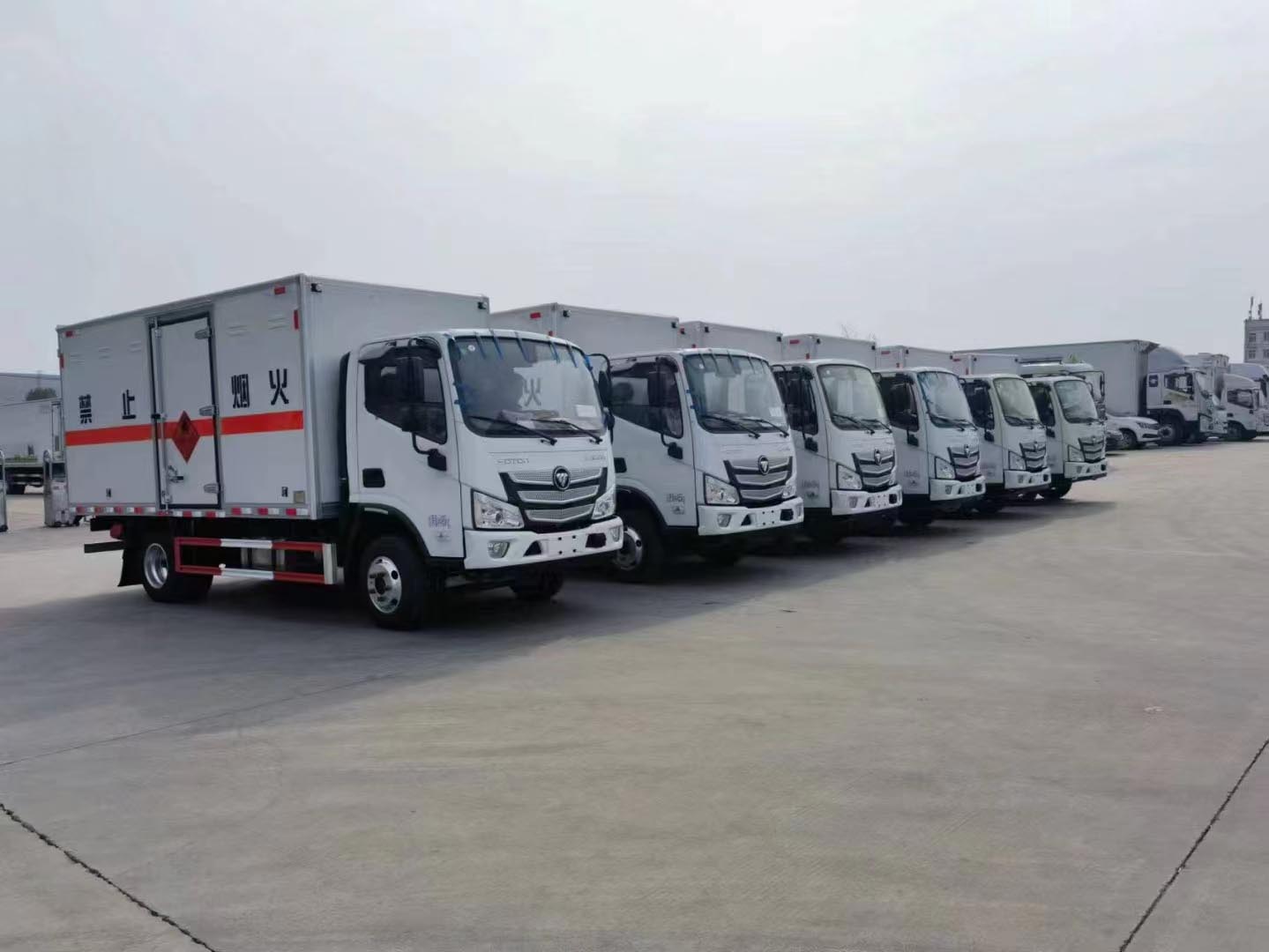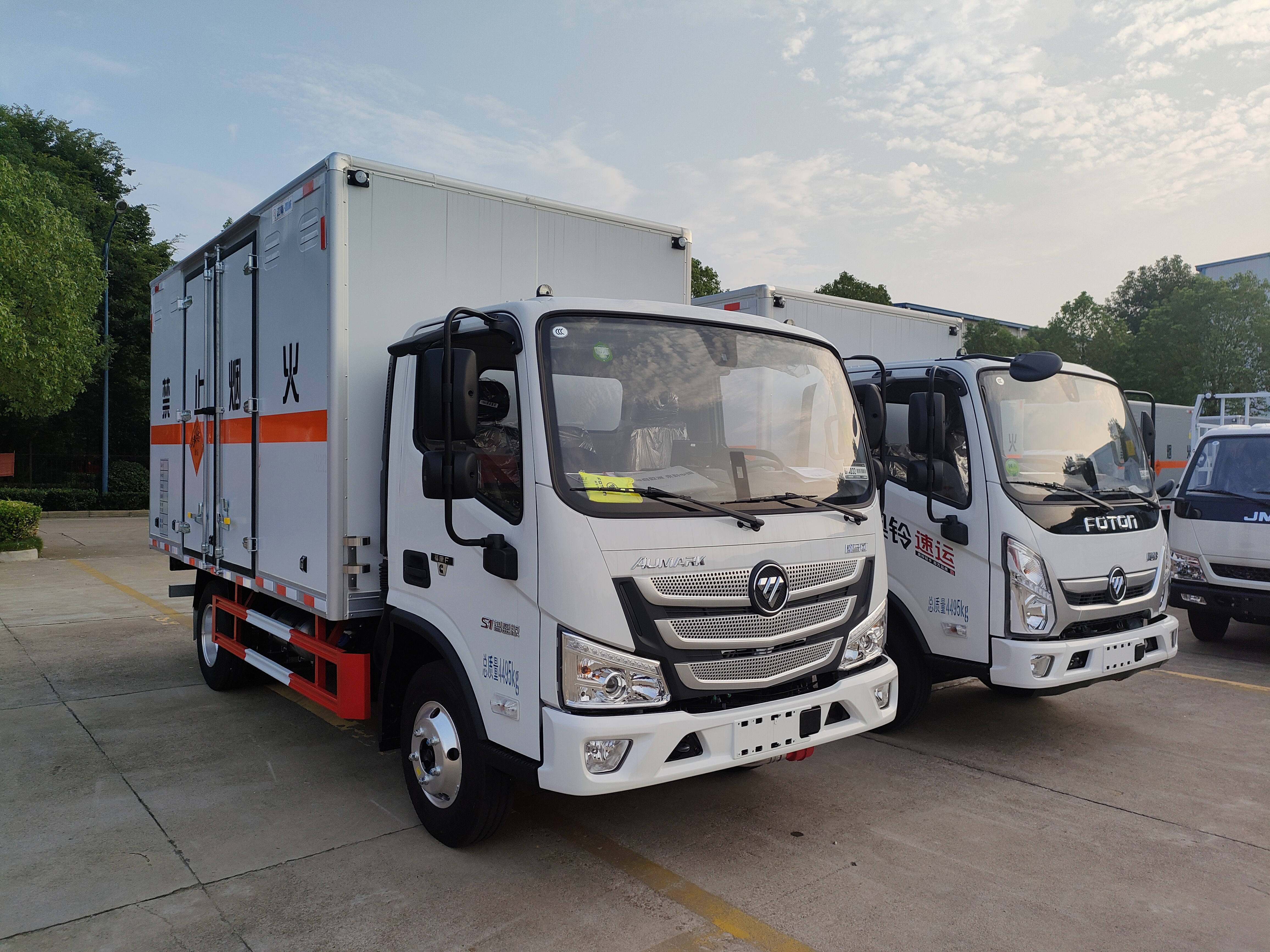 三臺福田奧鈴國六瓦楞板危險品車發車
