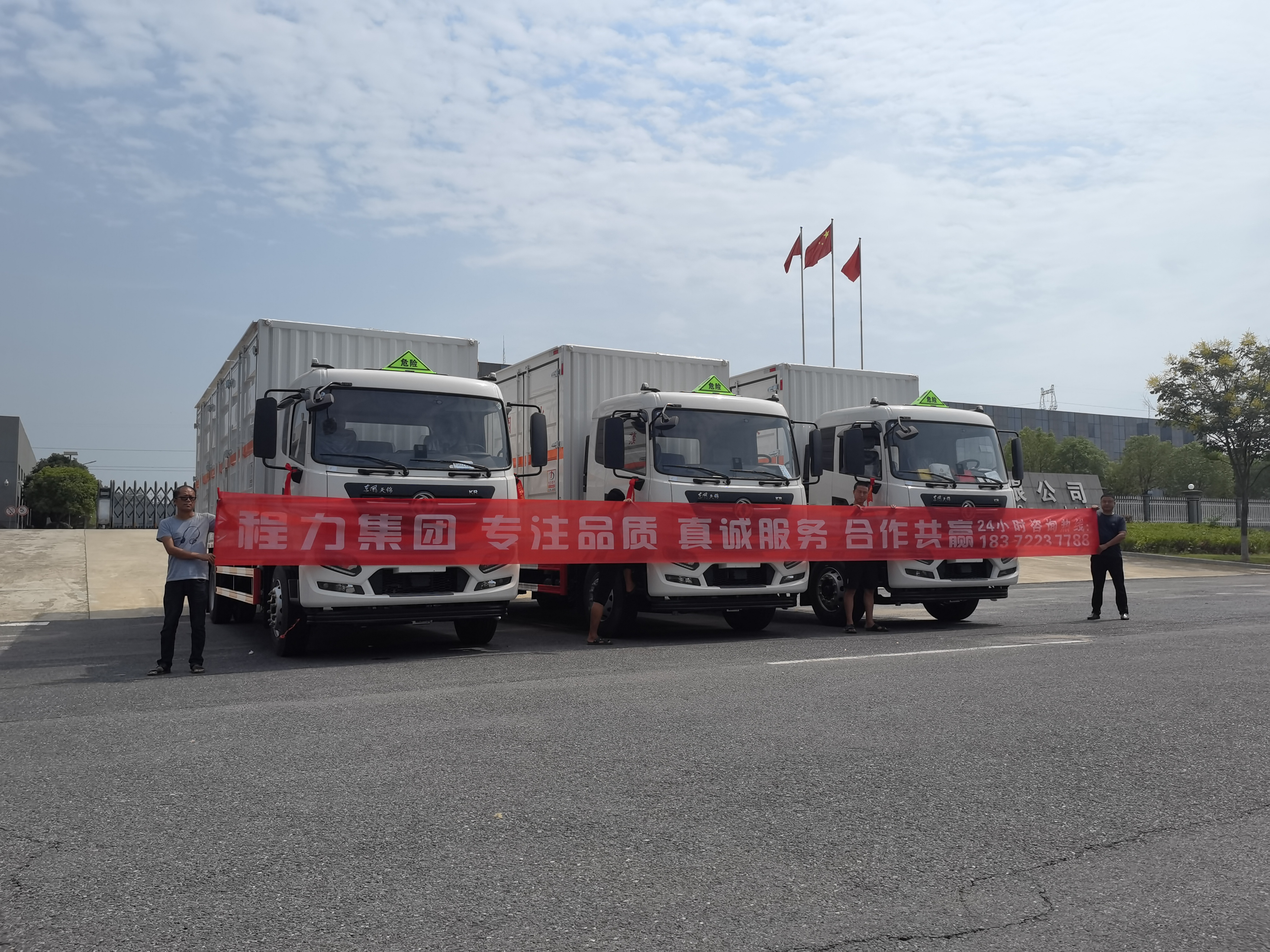 杭州陳總訂購2臺東風天錦易燃液體廂式車發車