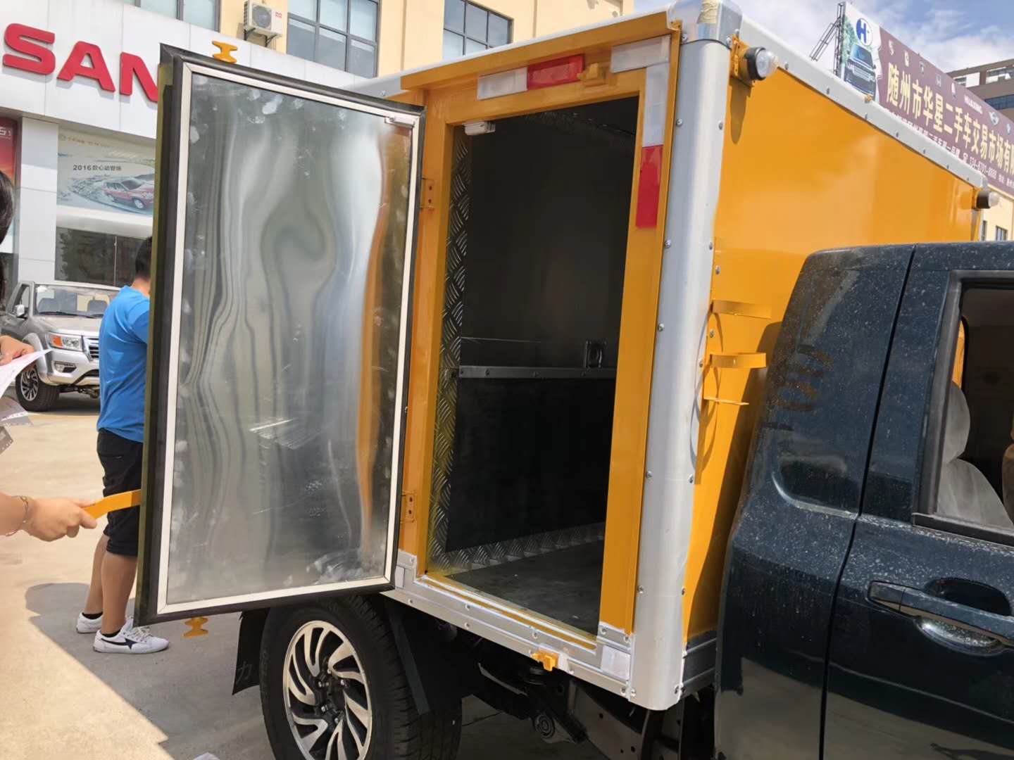 上裝配置:貨廂尺寸為2030X1780X1210(mm)、廂體外飾冷板、內(nèi)飾鋁板、中間為防阻燃泡沫、廂內(nèi)安裝臥環(huán)、煙霧報(bào)警器、防盜報(bào)警器、后雙開門(選裝隔斷及側(cè)開門)、帶拖地靜電帶,兩個(gè)滅火器,危險(xiǎn)品警示燈,危險(xiǎn)品標(biāo)牌,其它均按廠標(biāo)組織生產(chǎn)。