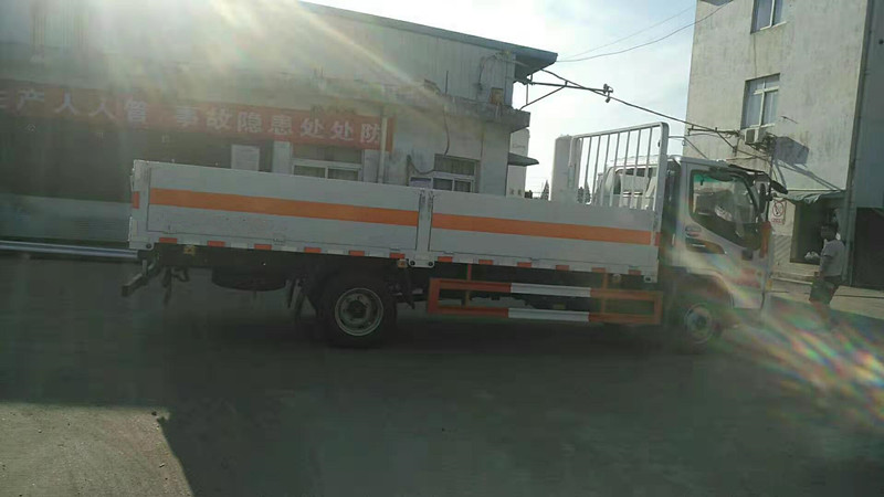 上裝配置:貨廂尺寸:4050×1940×600mm 邊板對折四開門、外板采用1.2MM厚冷軋板,內襯為矩形管骨架牢靠穩定,底板為3mm厚花紋板,有靜電帶、滅火器、防火罩。整車國標反光標示及警告標志。