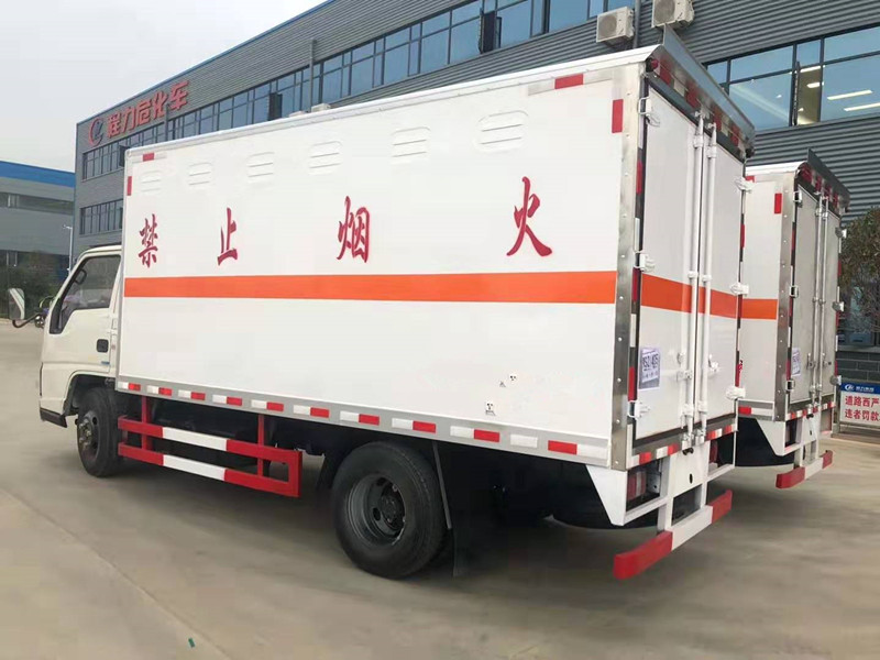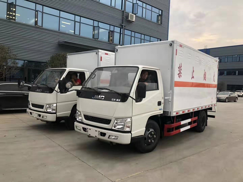 四川柴總因公司業務需求增購兩臺江鈴順達爆破器材運輸車,柴總通過朋友介紹找到我司陳經理,陳經理為柴總推薦的是江鈴順達爆破器材運輸車,該車采用江西江鈴公司生產的江鈴原裝底盤進行改裝,3360mm軸距、JX493ZLQ4江西五十鈴發動機(108馬力)、7.00鋼絲輪胎、助力、油剎、148車架、1.5噸前橋/3.3噸級后橋、12伏單電瓶、前置排氣管、新款可前翻轉駕駛室、前盤制動、限速裝置、帶ABS行車紀錄儀,貨廂尺寸為4200X1850X1730(mm)、廂體外飾冷板、內飾鋁板、中間為防阻燃泡沫、廂內安裝臥環、煙霧報警器、防盜報警器、右邊開側門、后雙開門、帶拖地靜電帶。