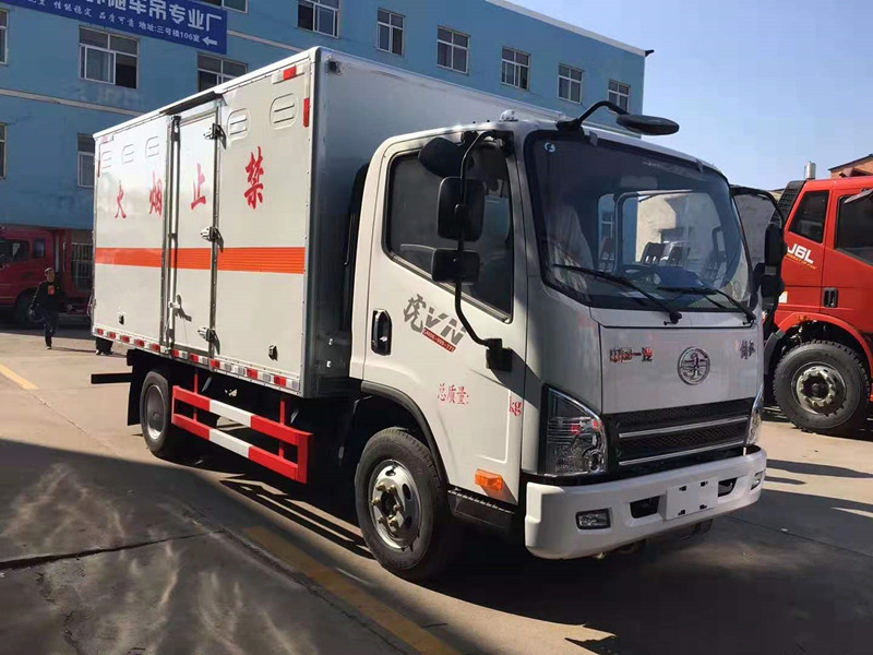 天氣晴朗,秋高氣爽!解放藍牌雜項危險品運輸車發車,駕駛室帶原裝空調、帶方向助力,是一款性價比高的車型!該車是危險品車可以乘坐三人車型,駕駛室容載量大、配置高,危險品運輸首選!