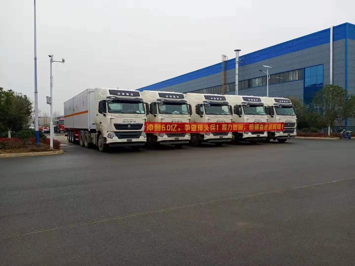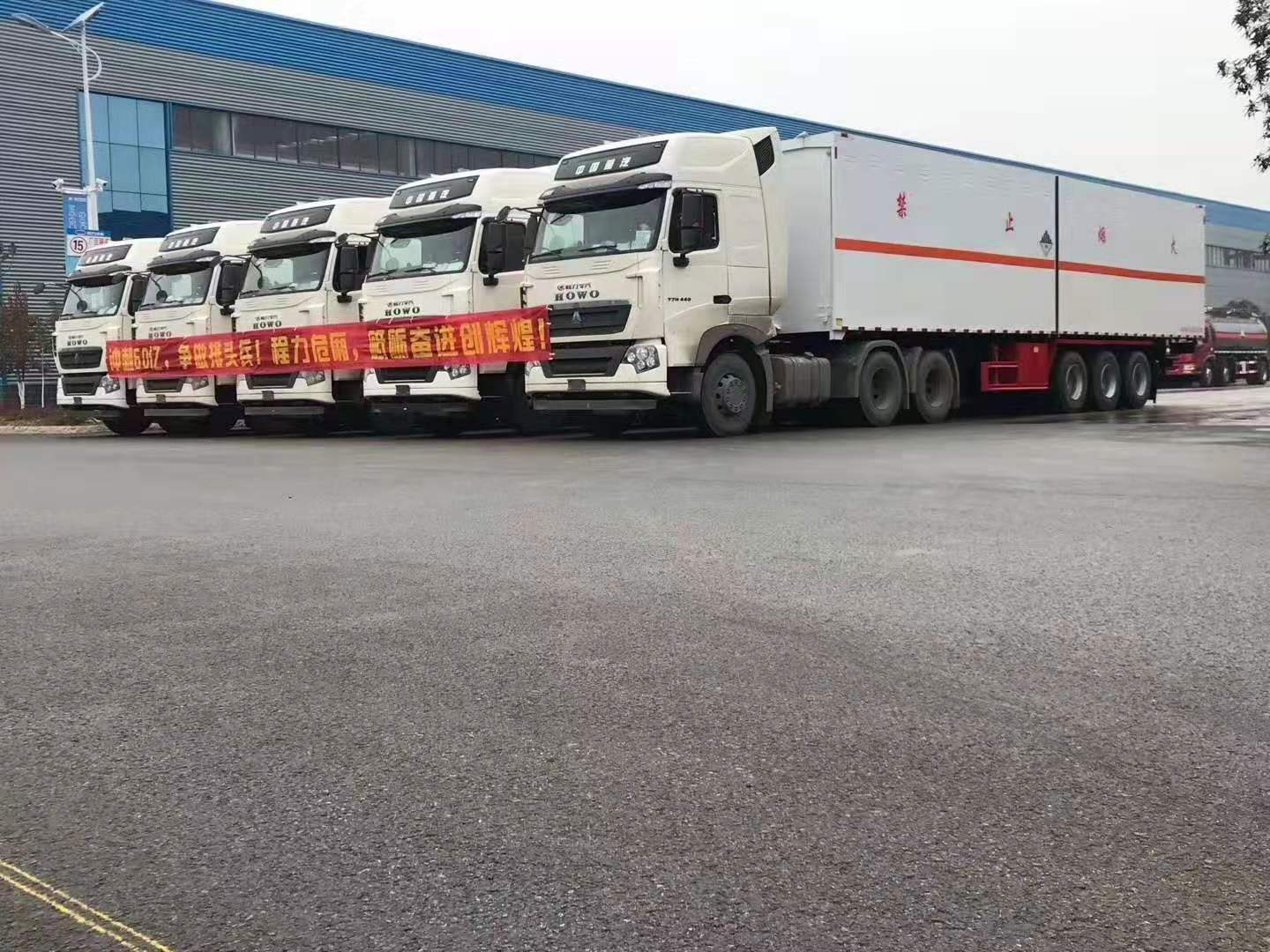 2020年新規執行在即,氣囊懸掛底盤一度成為熱門的產品!在新規倒計時之際,來程力專汽訂購危險品車的客戶越來越多。內蒙謝總在我司訂購了5臺雜項半掛危險品車吉時發車,以下是具體實拍圖片: