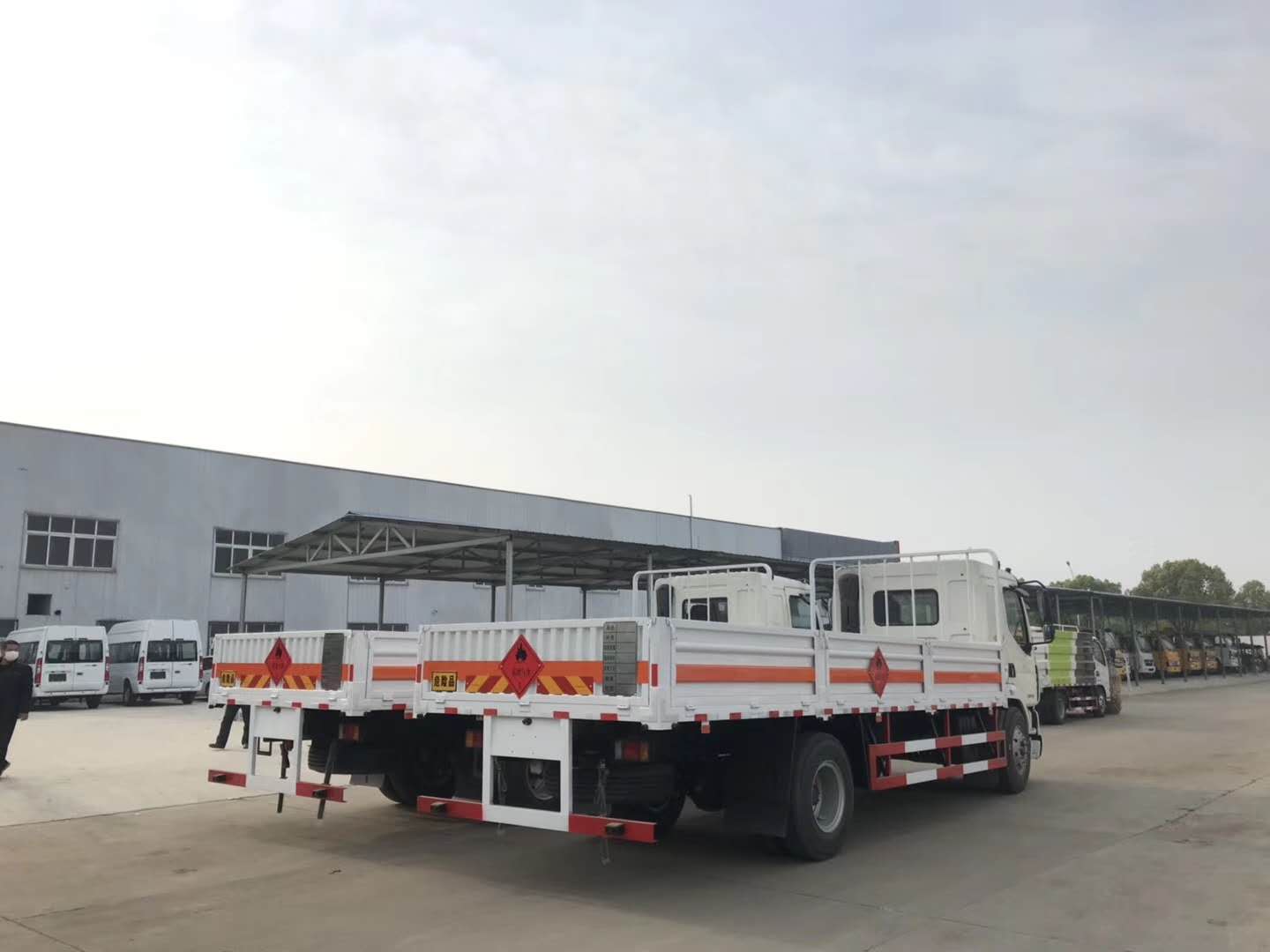 杭州王總因業務需求,在我司采購了兩臺柳汽乘龍6.8米低欄板平板運輸車,該車在單橋危險品車中,貨箱尺寸非常大,性價比非常高。以下是具體實拍圖片: