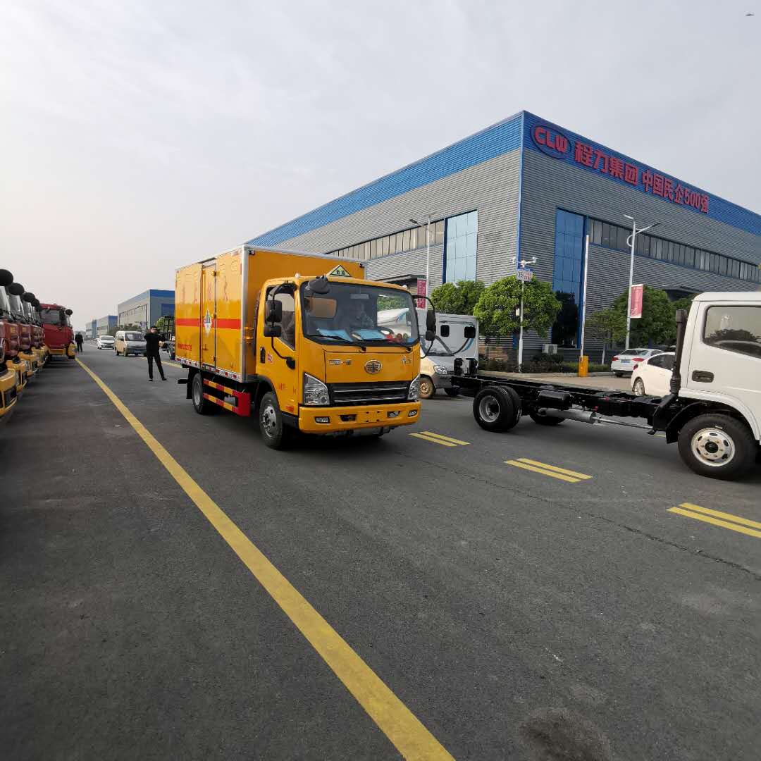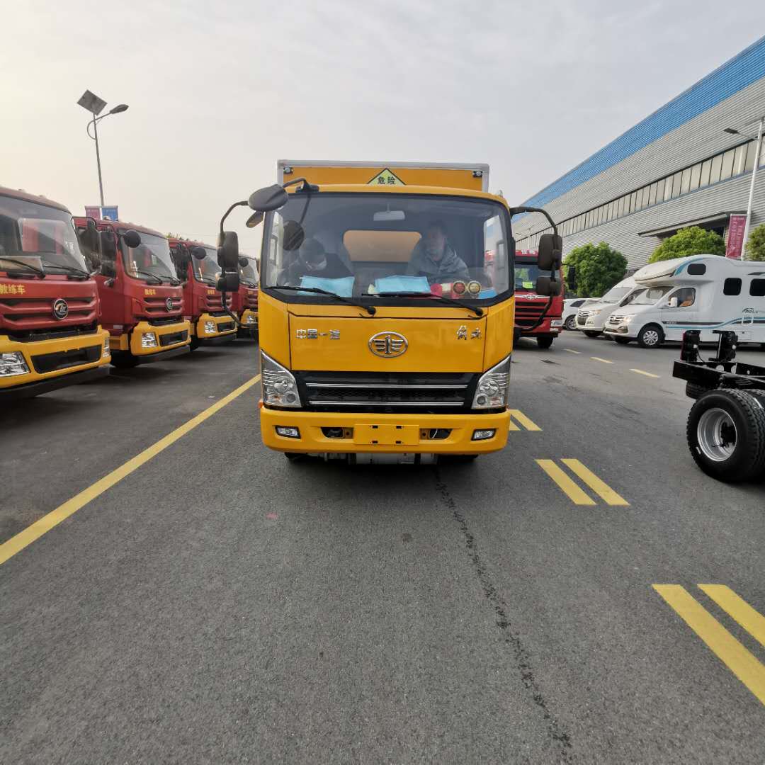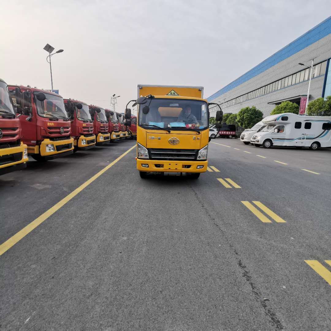 河北王總因公司業務擴展需增加資質在我司采購了五臺危險品車,前期三臺東風多利卡危險品車已提車,王總覺得非常滿意,繼續在我司采購了兩臺危險品車(一臺為解放危險品車和一臺江鈴危險品車)。王總是專門從事八類腐蝕品和九類雜項危險品,此次增購的車輛為江鈴腐蝕品廂式車和解放雜項危險品車。為了不耽誤王總用車時間,我司加班加點為王總趕制生產,以下是具體發車實拍: