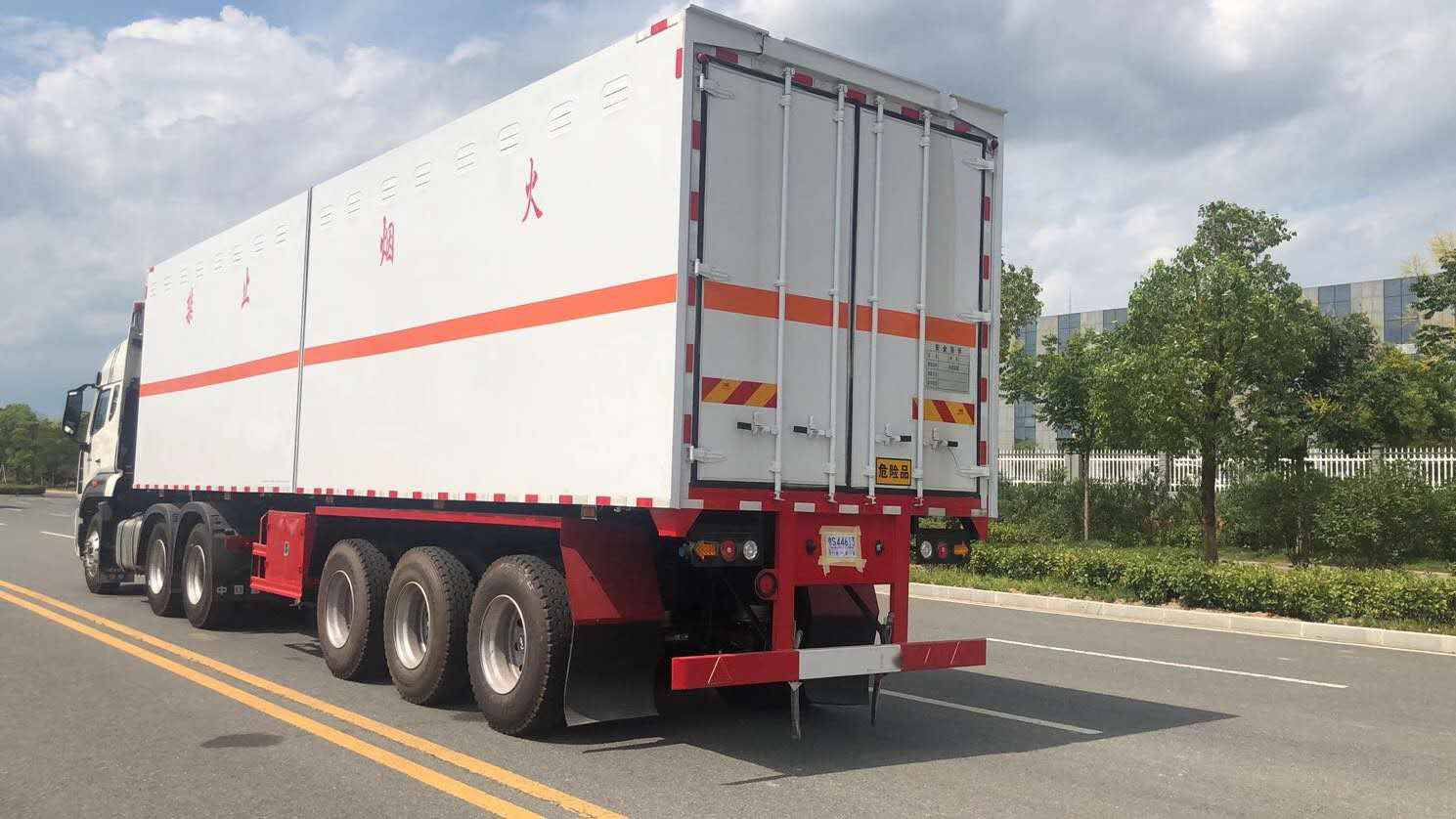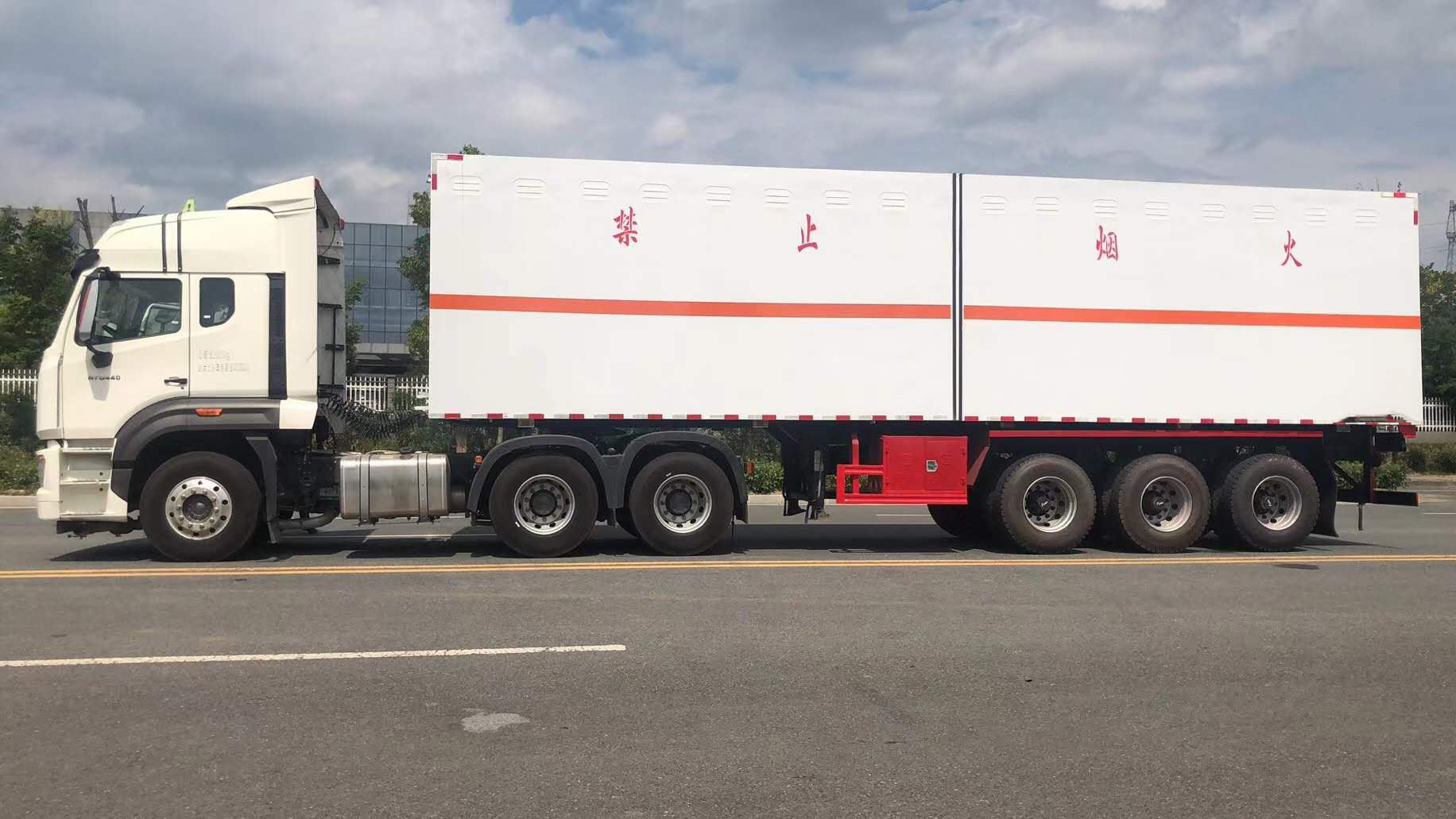 翼展式半掛危險品車上裝配置:1、外板采用1.2mm厚冷軋板有一次性成型的百葉窗2、內(nèi)飾為導電性能良好的鋁板有透氣孔3、內(nèi)襯為矩形管骨架牢靠穩(wěn)定4、內(nèi)部填充為透氣防潮阻燃的擠塑板5、四種材料經(jīng)現(xiàn)代工藝復合而成6、廂體外部上下鋁合金型材包邊7、底板和車廂前下部鋪橡膠皮8、后門雙開,選裝側(cè)開門9、內(nèi)部有固定貨物的臥環(huán)10、車輛外部有靜電帶、滅火器、防火罩11、車廂內(nèi)安裝煙霧報警器和門防盜報警器12、嚴格按照國家危險品相關(guān)法規(guī)張貼危險品標識和反光標志等