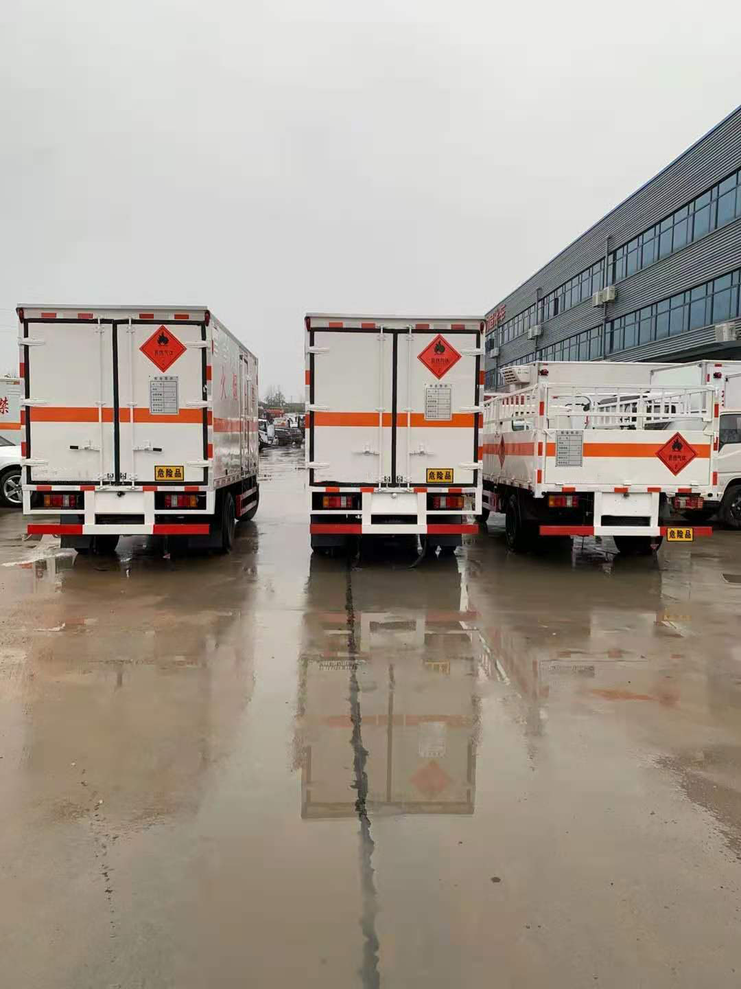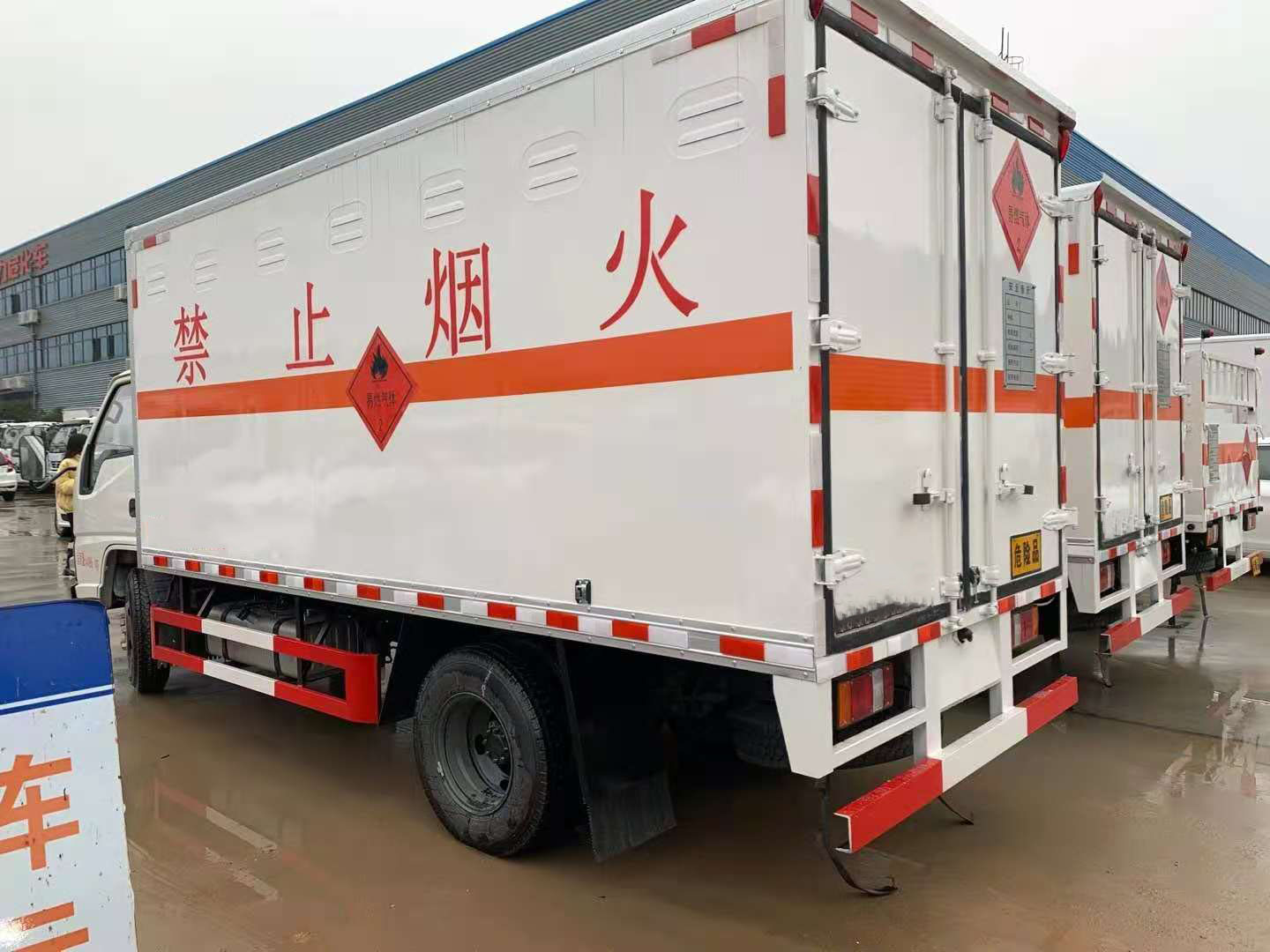 江鈴國(guó)五危險(xiǎn)品車(chē):整車(chē)尺寸:5995×2040×2880(mm)貨箱尺寸:4130×1870×1750(mm)。底盤(pán)配置:五十鈴115馬力國(guó)五發(fā)動(dòng)機(jī),帶方向助力,5檔變速箱,排氣管前置,前盤(pán)后鼓,ABS。箱體采用三明治結(jié)構(gòu),外厚度為1.5毫米厚度武鋼冷軋鋼板,中鋼骨架,內(nèi)為鋁合金平板,中間填充防火阻燃材料,箱體厚度為5公分,箱體外表上方采用模壓成型帶防水通風(fēng)功能百葉窗,內(nèi)部為細(xì)孔式通風(fēng)蓋,固定貨物的臥式拉環(huán)鉚接在鋼骨架上,牢固可靠,箱體自下向上80公分處和底板均采用5毫米厚度絕緣墊皮,防止靜電產(chǎn)生火花,保證安全。箱體頂板安裝高敏度煙霧報(bào)警器和駕駛室報(bào)警系統(tǒng)相連接,防止事故的發(fā)生。門(mén)內(nèi)安裝高精度限位裝置和駕駛室內(nèi)部報(bào)警器相連接,杜絕箱門(mén)未鎖緊情況。箱體外部箱門(mén)打開(kāi)處安裝防自關(guān)門(mén)的限位風(fēng)勾,箱體外觀涂裝醒目黃色油漆,在箱體的左、右、后部粘貼紅色“易燃?xì)怏w”字標(biāo)識(shí)。箱體前部安裝兩個(gè)掛滅火器的掛桶和配備兩只滅火器,后保險(xiǎn)杠處安裝防追尾事故的緩沖固定塊,駕駛室內(nèi)部安裝安全報(bào)警器連接后部箱體,對(duì)箱體內(nèi)部實(shí)施安全監(jiān)控。廂體顏色可選。