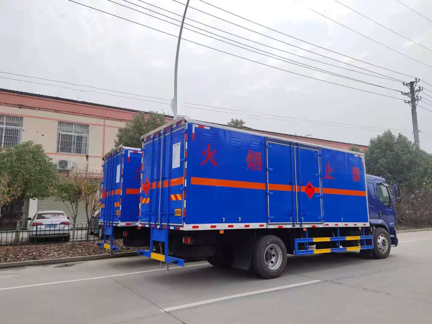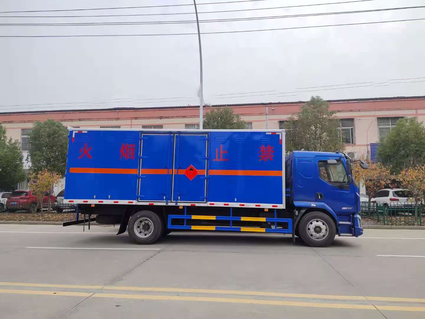 運輸危險品車有講究,客戶選擇車型時都會對車輛性能進行多項對比,同時顏色也是客戶不容忽視的一個問題。天津李總為了讓自己的車輛別具一格,在我司特定制了東風柳汽整車藍危險品車,以下是具體實拍圖片: