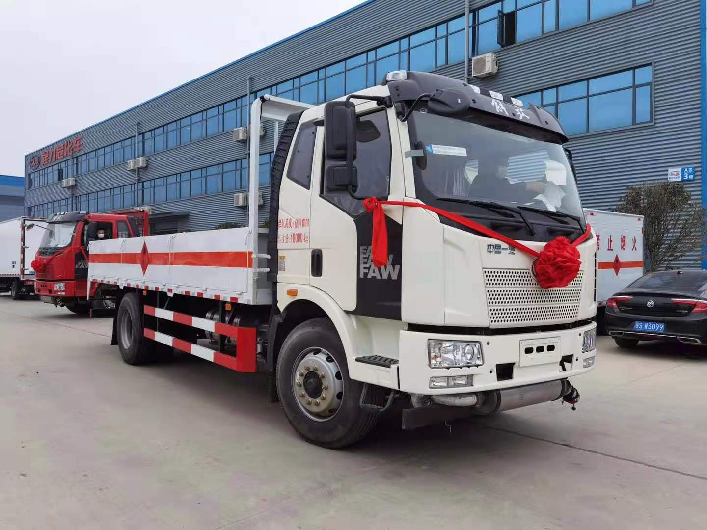 液化氣瓶和氧氣瓶配送一直是市場上需求量非常大的運輸,尤其是接近年底,各液化氣站都非常忙碌。為了更好地方便運輸,各地客戶都在增購車輛。山東李總也不例外,因自身業務需求在我司自提了兩臺解放J6氣瓶運輸車,以下具體實拍圖片: