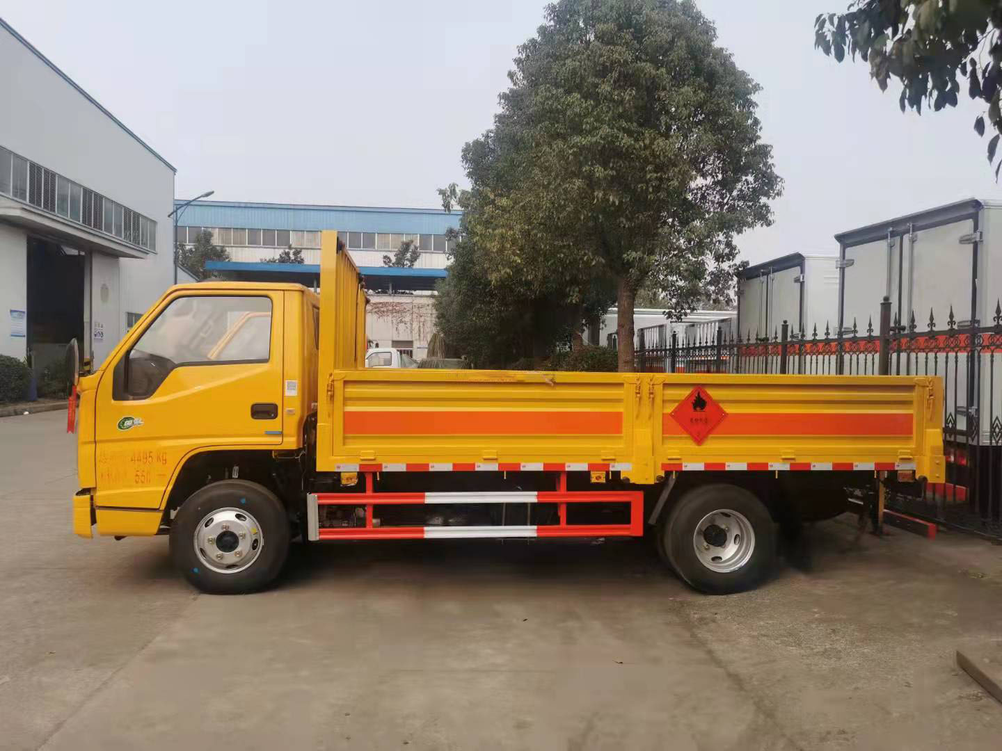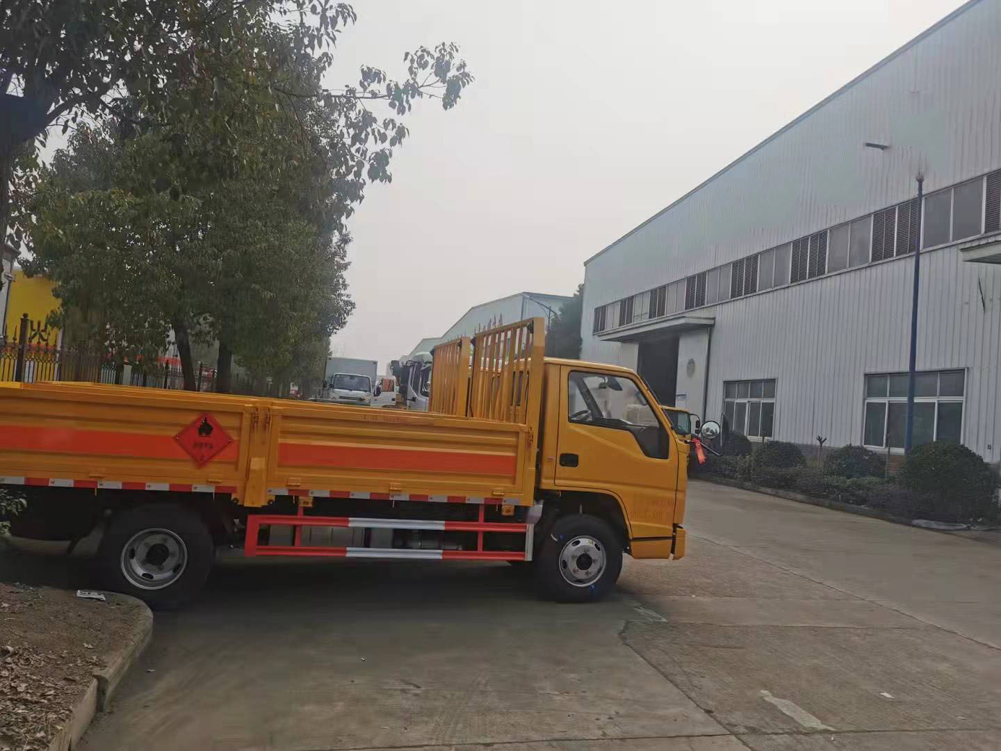 江鈴國六氣瓶運輸車額載噸位可達1.2噸, 采用3360mm軸距,江鈴順達單排駕駛室,江鈴115馬力發動機,5檔變速箱,3.5噸后橋,7.00R16輪胎,油剎,電動門窗,多功能方向盤,空調,雙預警。整車尺寸:5998×2150×2250mm,廂體尺寸:4120×2000×600mm。箱體嚴格按照公告尺寸制作,邊2底3材質,底板上鋪靜電膠皮,側板上帶可卸式高欄,配備滅火器,三角頂燈,靜電拖帶等,嚴格按照國家危險品法規進行“易燃氣體”標識粘貼。