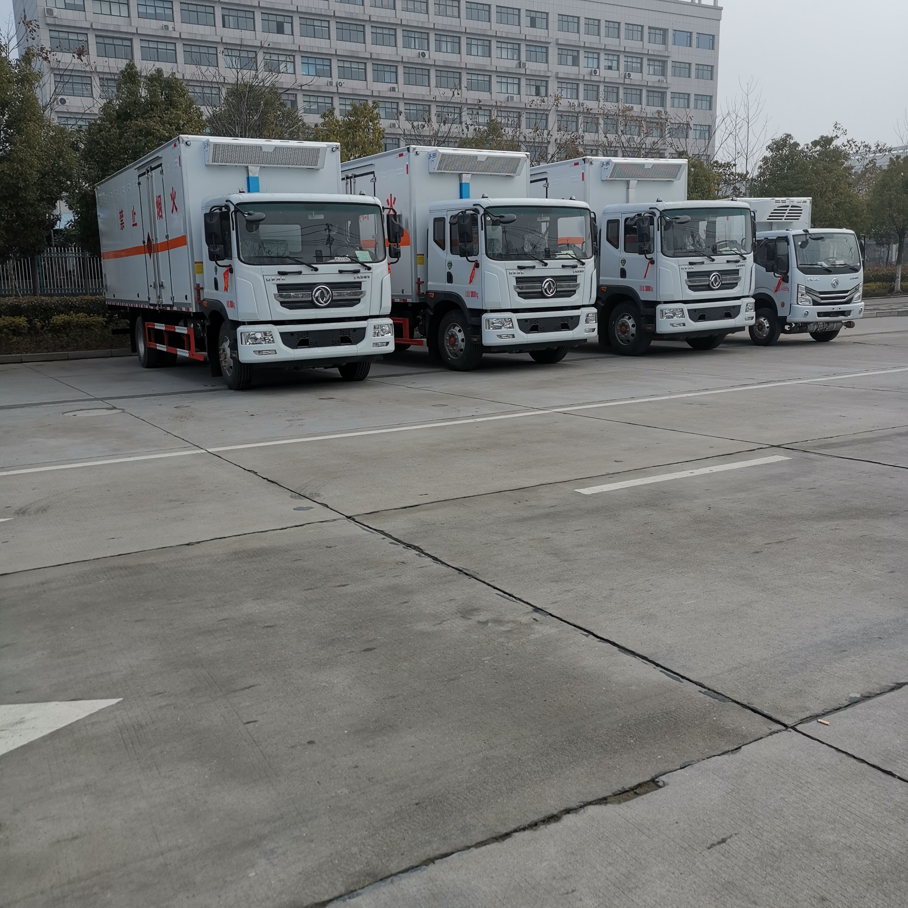 危險品車運輸都少不了專用的車輛,尤其隨著市場管理越來越嚴格,很客戶購買危險品車都想要帶機組的,以便氣溫升高,車廂內通風效果不好,導致車廂溫度過高引發安全事故。因而根據市場需求,我司定制了幾款專門適合制冷機組的三類危險品車,甘肅李總聞訊而來,在我司批量訂購了4臺帶制冷機組危險品車,以下是具體發車實拍: