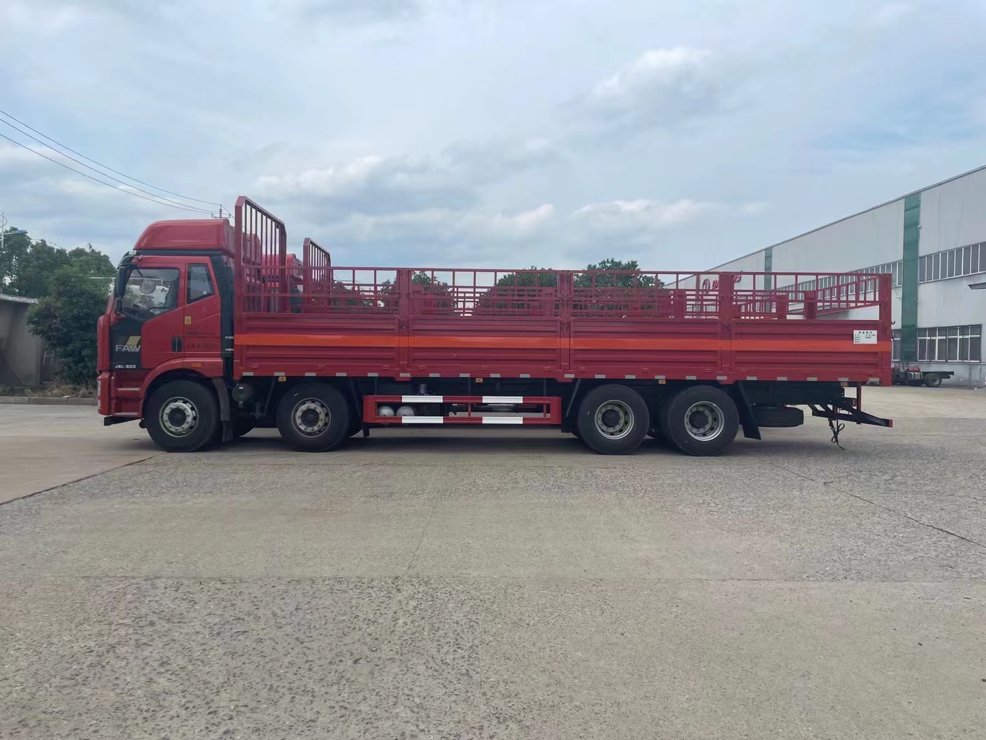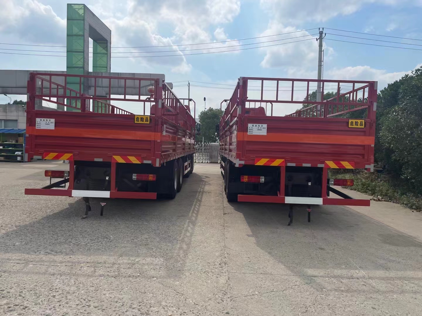 解放前四后八國六氣瓶車尾部帶液壓尾板,整車不超重,貨箱采用可拆卸式花欄貨箱,底板上鋪靜電膠皮,嚴格按照國家危險品法規進行“易燃氣體”標識粘貼,隨車配備手提滅火器,危險品三角頂燈,防火帽等。帶整車合格證、隨車工具、服務手冊、保修手冊。