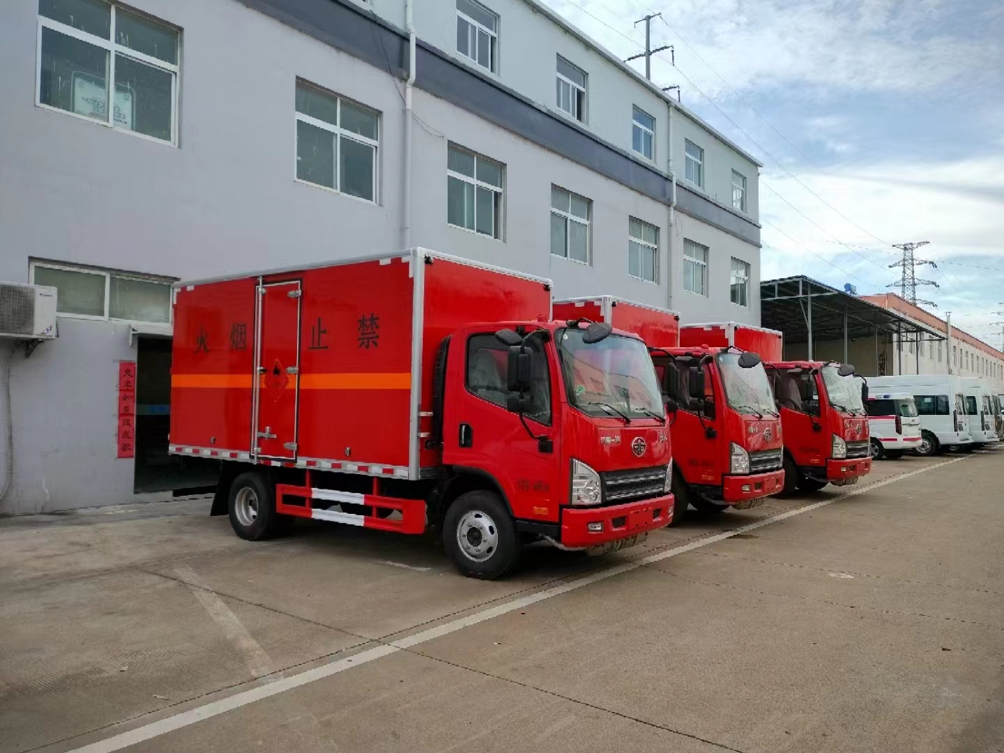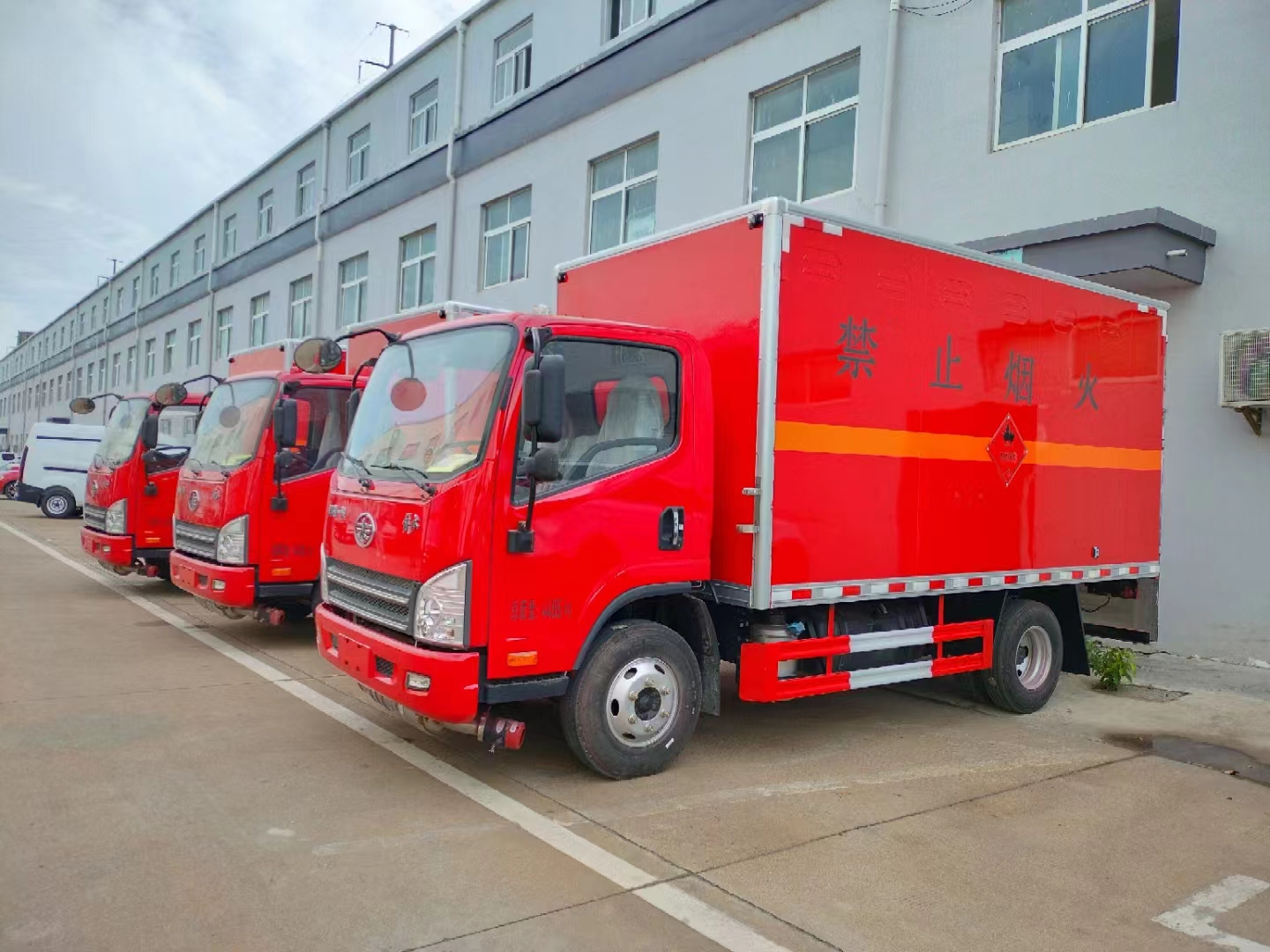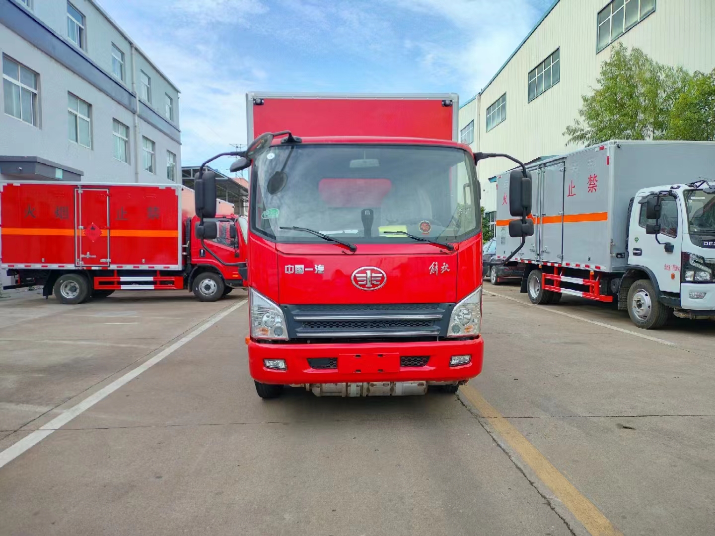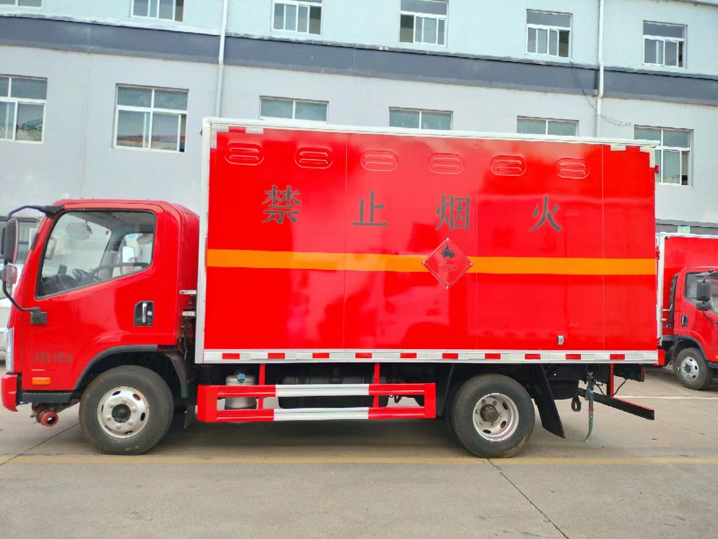 根據運輸要求,該類車型匹配的是解放虎V專用危險品車底盤,可選濰柴130馬力或錫柴130馬力發動機,帶中控鎖、電動門窗、原廠空調。該車采用的是寬體駕駛室,3人座尤其適用的是在山區適用的用戶,該車箱體采用的是烤漆板工藝,油漆不容易生銹。針對市場應對需求,帶發動機制動、靜電拖地帶、全浮駕駛室中控遙控門鎖、手機支架,ABS,限速裝置,大燈高低可調,反光背心,廂體采用外冷板內飾鋁板中間4公分阻燃層制作,底部鋪靜電膠皮。廂內安裝煙霧報警器,后門及側門安裝防盜報警器,帶危險品三角燈防火罩,防飛濺檔泥板。