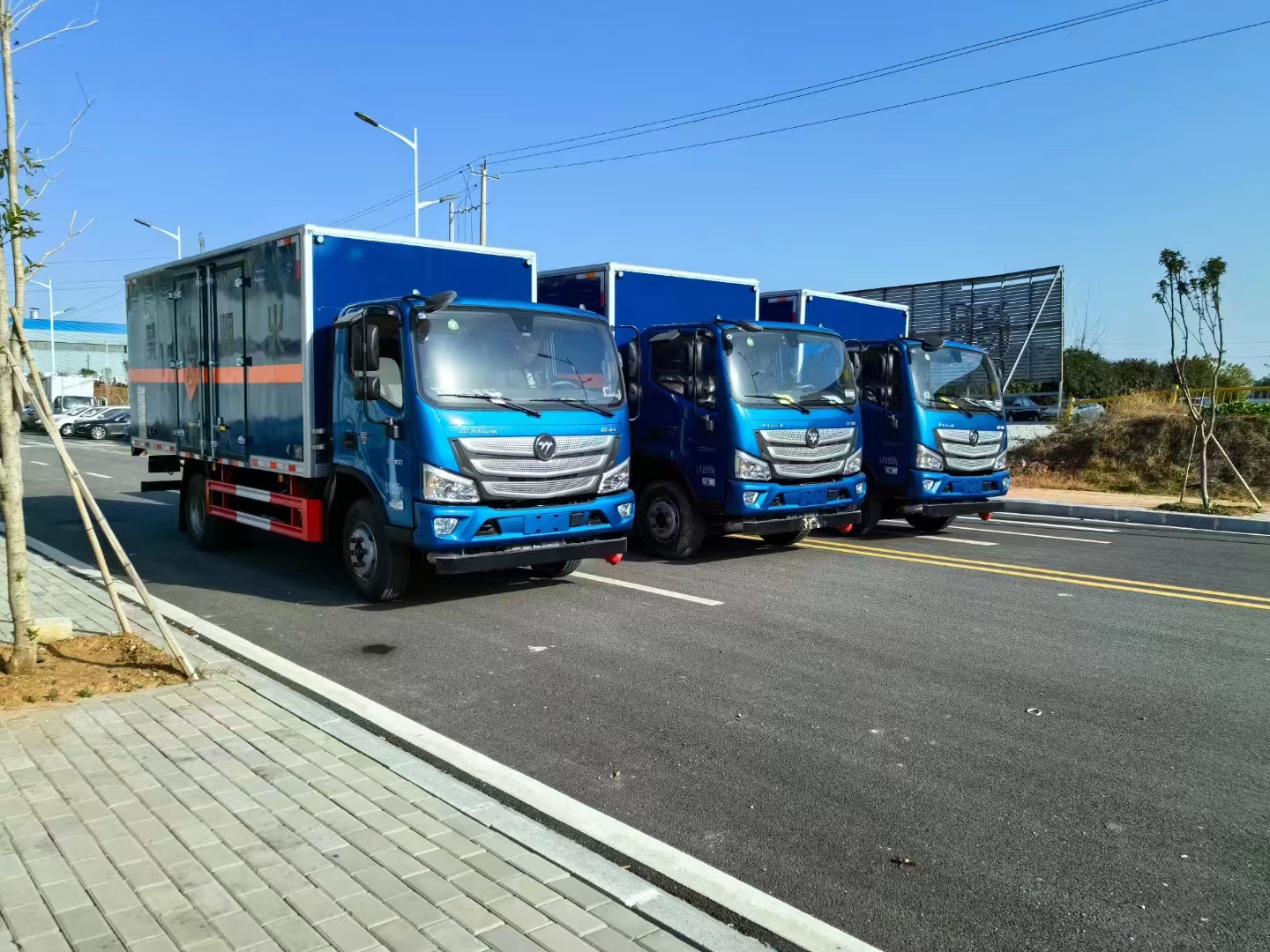 福田歐馬可藍牌爆破器材運輸車選用的是危險品專用底盤,康明斯131馬力發動機,匹配有中控鎖、電動門窗、原廠空調,箱體選用的是我司專用的定制藍色箱體,采用的是外冷軋板內鋁板,中間夾阻燃材料。箱體帶側門。可定制不同顏色,尾部可選擇帶側門。