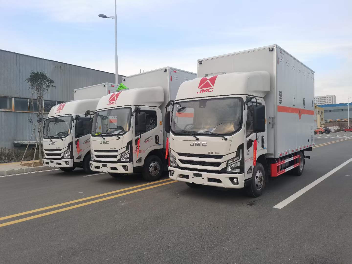 江鈴凱運國六爆破器材運輸車選用的是江鈴凱運1900mm寬體駕駛室(寬體3人座),3360mm軸距,選用的是品牌麥格納格特拉克5檔變速箱,130馬力,斷氣剎,電源總開關,限速80,排氣管前置、ABS。匹配的是原廠空調,方向助力,遙控鑰匙中控鎖,電動車窗,多功能方向盤,定速巡航,7.00R16輪胎,斷氣剎,LED日間行車燈,直通大梁,新規雙預警裝置。