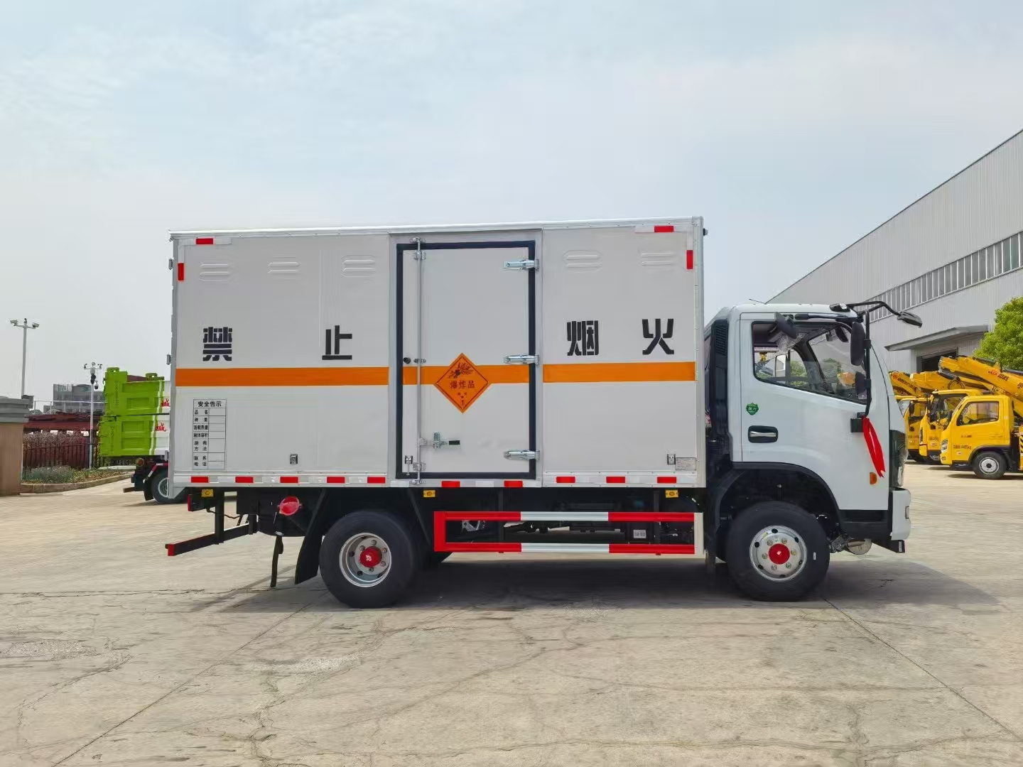 1:運輸炸藥:兩臺東風股份小黃牌4.1米爆破車,玉柴140馬力,該車動力極其適合礦區山路,前排氣管離地高。2:運輸雷管:福田大將軍皮卡爆破,4驅,2.5排量,全越野胎,前排氣管離地高,額載大。