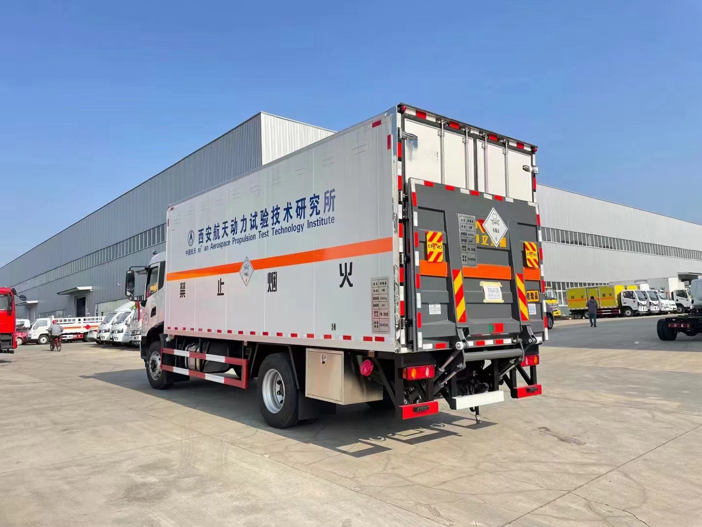 危險品冷藏車俗稱危冷車,該貨箱與以往箱體不一樣,箱體為保溫冷藏設計,貨箱尺寸6800*2400*2400,額載9.995噸,側板8cm,選用凱雪冷機,溫度可達-18度公告完全符合法規,無任何缺陷,冷機及尾板公告同時體現。