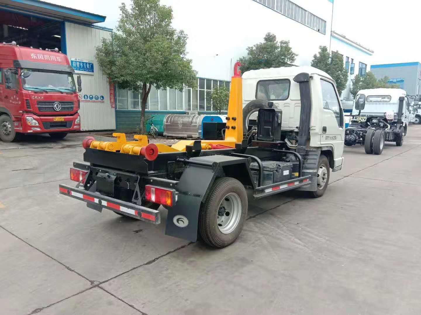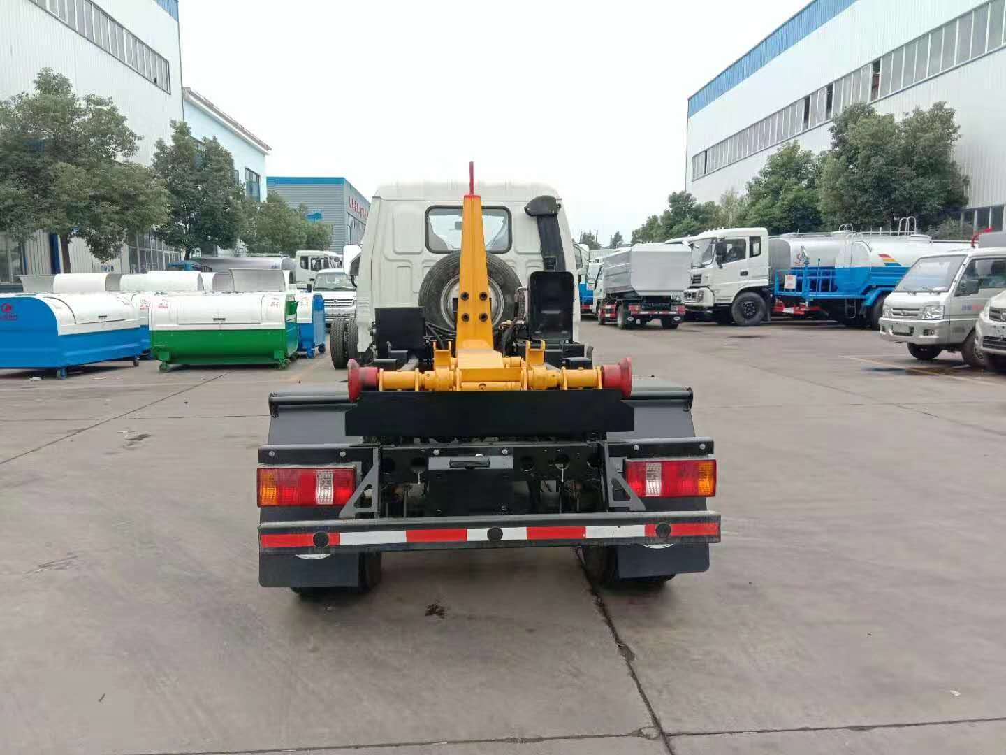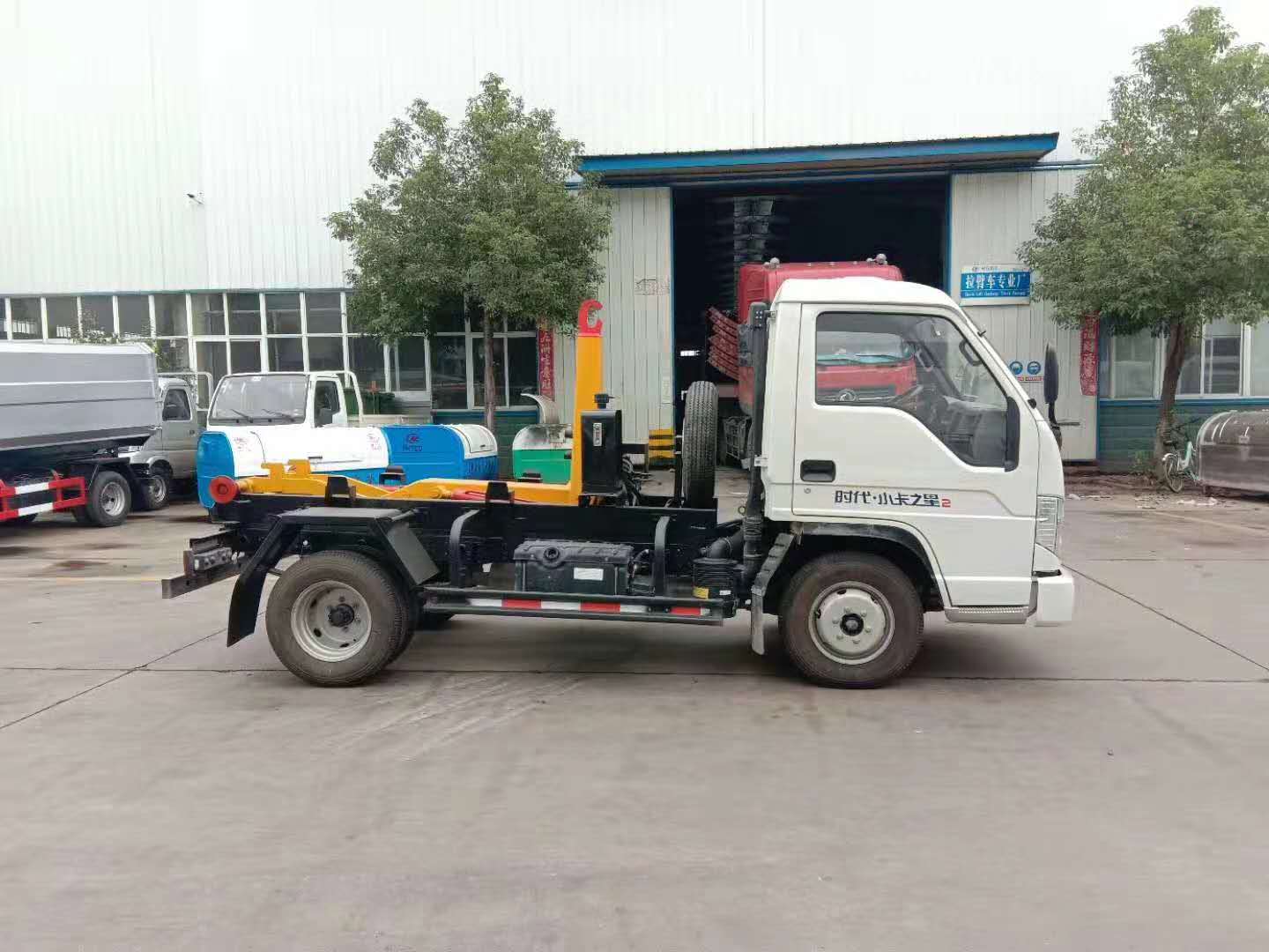 勾臂式垃圾車可將地下垃圾箱內(nèi)的垃圾及垃圾箱一同拉至車上運走同時可自卸,且垃圾箱體采用液壓鎖緊或開啟,降 低了工人的勞動強度和改善了工作環(huán)境。該垃圾車的收運方式是目前世界上廣泛采用的垃圾收運方式,可以實現(xiàn)一車多箱,大大降低了配備成本和空間等等;其專用裝置的功能均以汽車發(fā)動機為動力,通過液壓機構(gòu)手動或電控、氣控來實現(xiàn)。