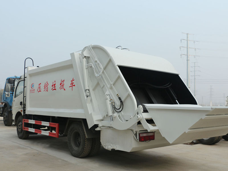 壓縮式垃圾車采用機電液一體化技術,借助機、電、液聯合自動控制系統,通過車廂、填裝器和推鏟等專用裝置,實現垃圾倒入、壓碎或壓扁、強力裝填,把垃圾擠入車廂并壓實和推卸。其主要特點是垃圾收集方式簡便、高效、具有自動反復壓縮以及蠕動壓縮功能,壓縮比高,裝載質量大,作業自動化,動力性、環保性好,整車利用效率高。