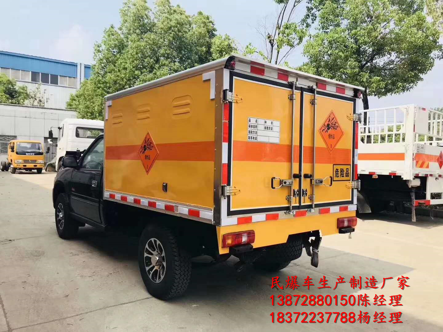 慶鈴五十鈴皮卡爆破器材運(yùn)輸車,采用慶鈴五十鈴皮卡單排駕駛室底盤,整車帶有中控門鎖、電動(dòng)門窗、多功能方向盤、額載500㎏,四驅(qū),五十鈴130馬力發(fā)動(dòng)機(jī),動(dòng)力足,駕駛舒適,廂體廠2.1米,廂體外飾冷板、內(nèi)飾鋁板、中間為防阻燃泡沫、廂內(nèi)安裝臥環(huán)、煙霧報(bào)警器、防盜報(bào)警器、右邊開側(cè)門、后雙開門、帶拖地靜電帶,其它均按廠標(biāo)組織生產(chǎn)。