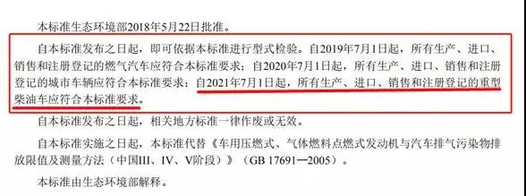 新發布的《重型柴油車污染物排放限值及測量方法(中國第六階段)》對國六排放標準的實施時間點進行了嚴格限定。