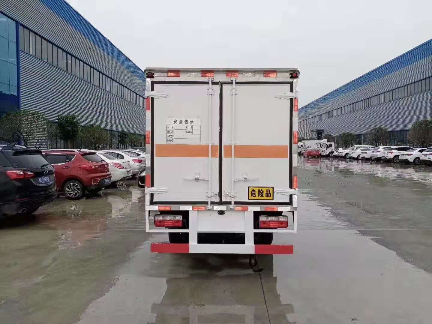 廂體配置:廂體尺寸:3000*1675*1500*1700.廂體為雙層金屬結構,廂體尾部雙開門,外板采用靜電屏蔽冷軋鋼板,中間填充B1防阻燃泡沐,內飾為鋁板。廂體上側安裝防雨通風透氣孔。底板為花紋板,上鋪防靜電膠皮,廂內兩側加裝固定貨物臥環,門框內帶防盜報警器,頂部帶煙霧報警器,底盤上裝有兩條拖地導靜電膠帶,廂體外側安裝示廓標記燈及手提滅火器等安全裝置。