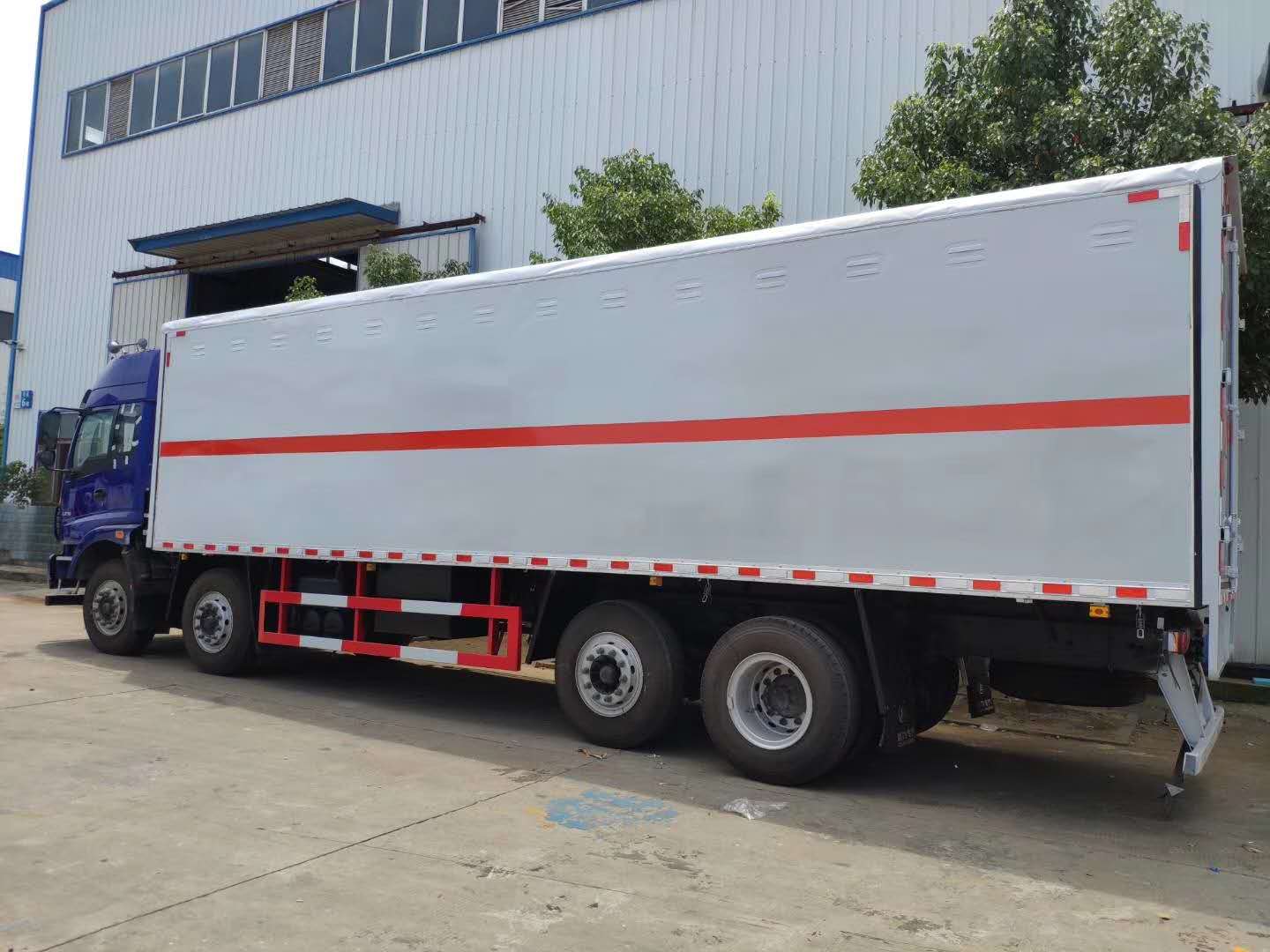 為了滿足大型危貨車裝卸貨物需求,現(xiàn)特推出廂體帶翼展式新型危貨車,代表車型是——福田歐曼前四后六9.6米翼展危貨車。以下是福田歐曼前四后六9.6米廂長危險(xiǎn)品運(yùn)輸車,翼開啟廂式車廂體矩型方管框架結(jié)構(gòu),鋁型材邊框、外飾鋁波紋板,內(nèi)飾鍍鋅平板,外頂整張鍍鋅平板,(可選鐵瓦楞材質(zhì))帶防水槽,3mm厚花紋底板并帶臥環(huán)。左右兩側(cè)雙飛翼液壓開起式車廂,廂體下端可以選裝活動(dòng)欄板。
