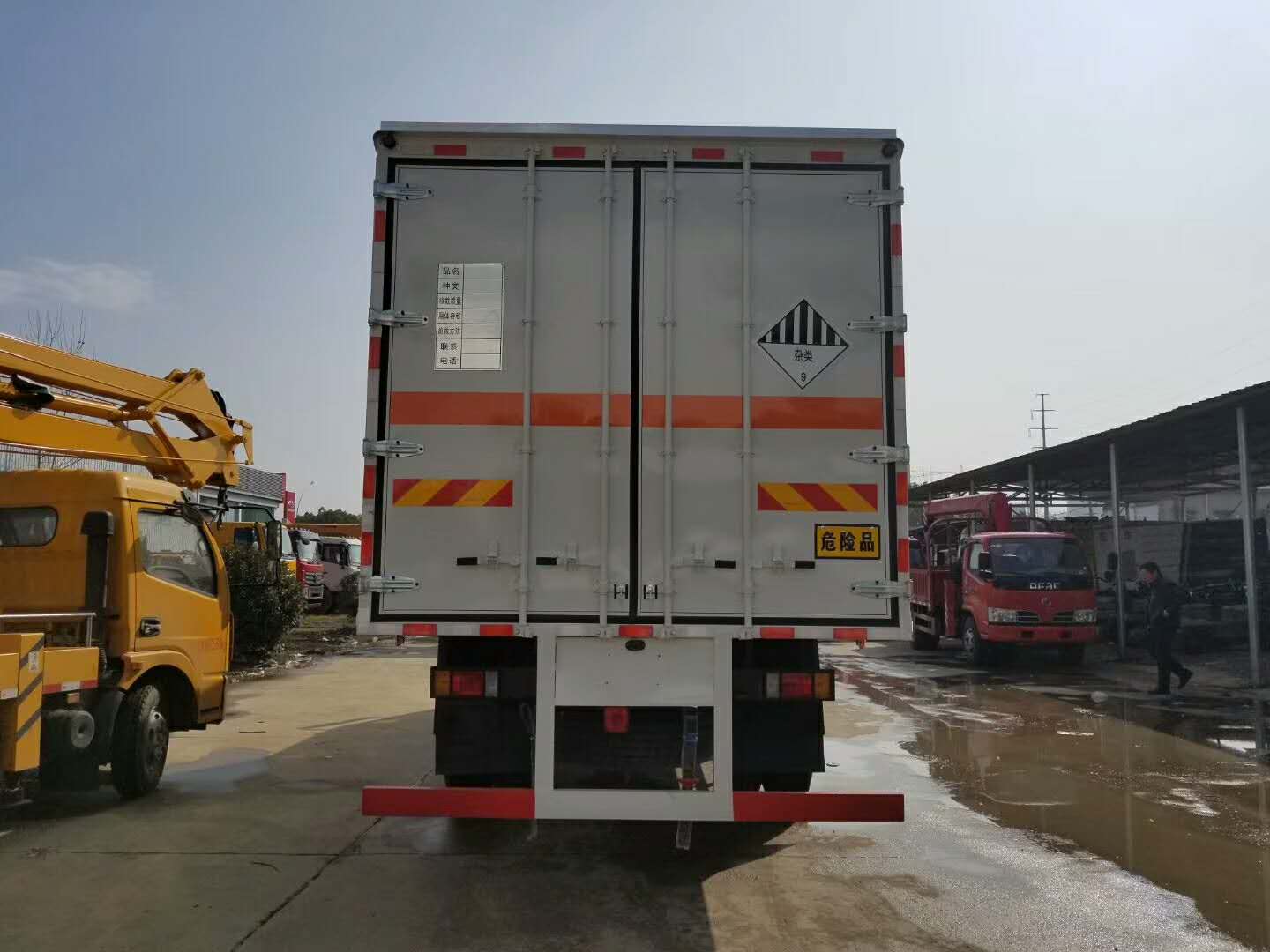 2)廂體配置:外板采用1mm厚冷軋板有一次性成型的百葉窗,內(nèi)飾為導(dǎo)電性能良好的鋁板有透氣孔,內(nèi)襯為矩形管骨架牢靠穩(wěn)定,內(nèi)部填充為透氣防潮阻燃的擠塑板,四種材料經(jīng)現(xiàn)代工藝復(fù)合而成,廂體外部上下鋁合金型材包邊,底板和車廂前下部鋪橡膠皮,后門雙開(kāi),選裝側(cè)開(kāi)門,內(nèi)部有固定貨物的臥環(huán),車輛外部有靜電帶、滅火器、防火罩,車廂內(nèi)安裝煙霧報(bào)警器和門防盜報(bào)警器,嚴(yán)格按照國(guó)家危險(xiǎn)品相關(guān)法規(guī)張貼危險(xiǎn)品標(biāo)識(shí)和反光標(biāo)志等。整車尺寸:9000×2550×3680 廂體尺寸:6580×2390×2180。