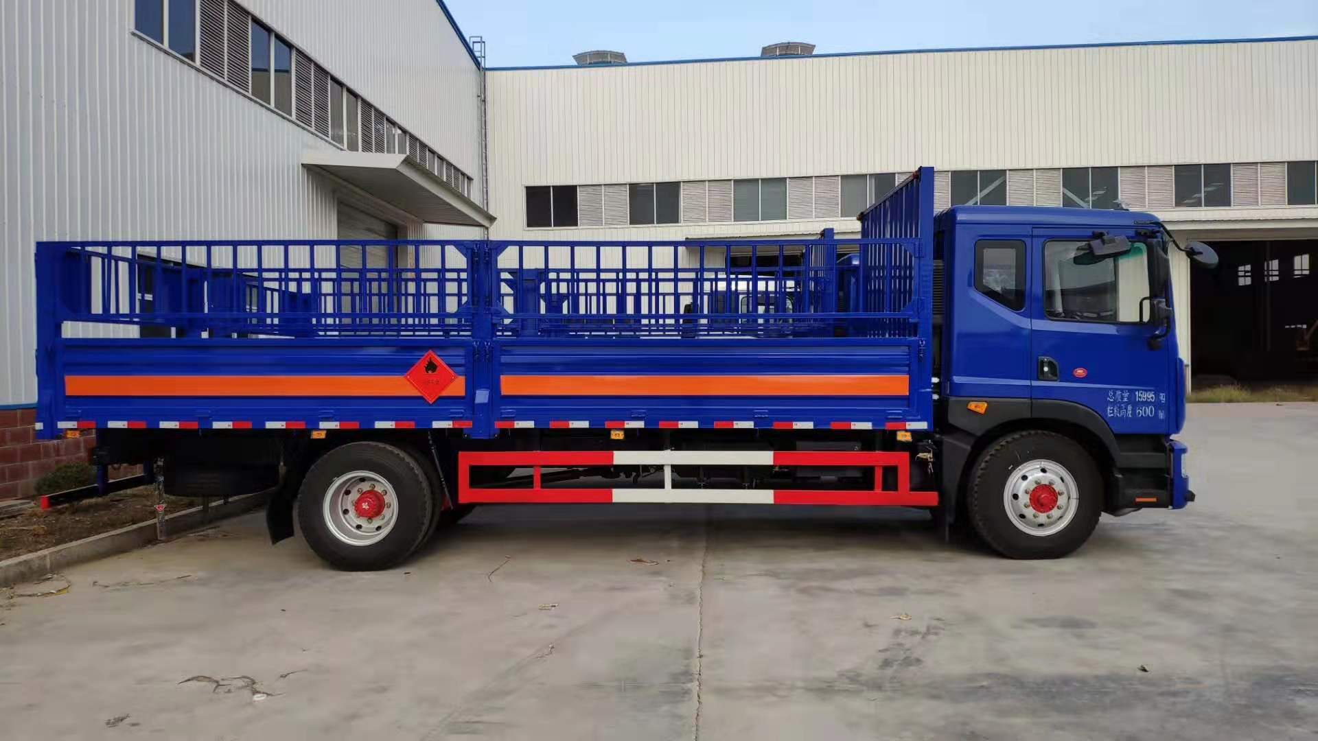 2)底盤配置二:D9排半駕駛室,ISB180 50(6缸)發動機,2315駕駛室,4700MM,250雙層車架,排氣制動,動力轉向,離合氣助力,空調,電動窗,中控鎖,排氣輔助制動,干燥器,斷氣剎,ABS,車橋3.9/8噸,法士特8檔變速箱,10.00R20鋼絲胎。前盤,限速,排氣管前置,外形尺寸(mm):8550X2550X3100,箱體尺寸(mm): 6200X2350X600。