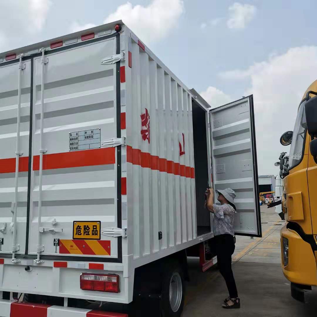 2)危險品車質(zhì)量如何?看車輛細(xì)節(jié)就知道,廂式要求:外冷軋鋼板內(nèi)鋁板,中間為阻燃泡沫,帶臥環(huán)、煙霧器、防盜器、靜電膠皮、靜電帶、防火帽、危險牌、可選裝單開門、雙開門。蒼欄式要求:貨箱底板為花紋板,邊板上部為花欄式,下部為板式活動,內(nèi)附活動環(huán),便于可靠固定垂直放置的氣瓶,并可選裝液壓尾板。