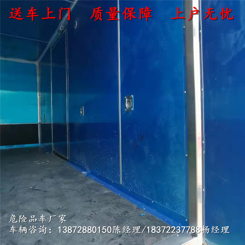 危險品車具體材質:冷板1mm,鋁板1.2mm,阻燃泡沫5cm,花紋板3mm,方管骨架40×40mm,邊梁副梁10#槽鋼,透明化公示我司生產工藝,只為告訴您我們的產品經得住市場考驗。