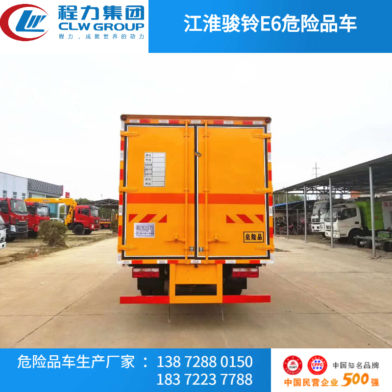 江淮E6危險品車配備滅火器,三角頂燈,靜電拖帶等,嚴(yán)格按照國家危險品法規(guī)進行危險品標(biāo)識粘貼。目前底盤已到現(xiàn)貨,歡迎各新老客戶來電咨詢訂購!