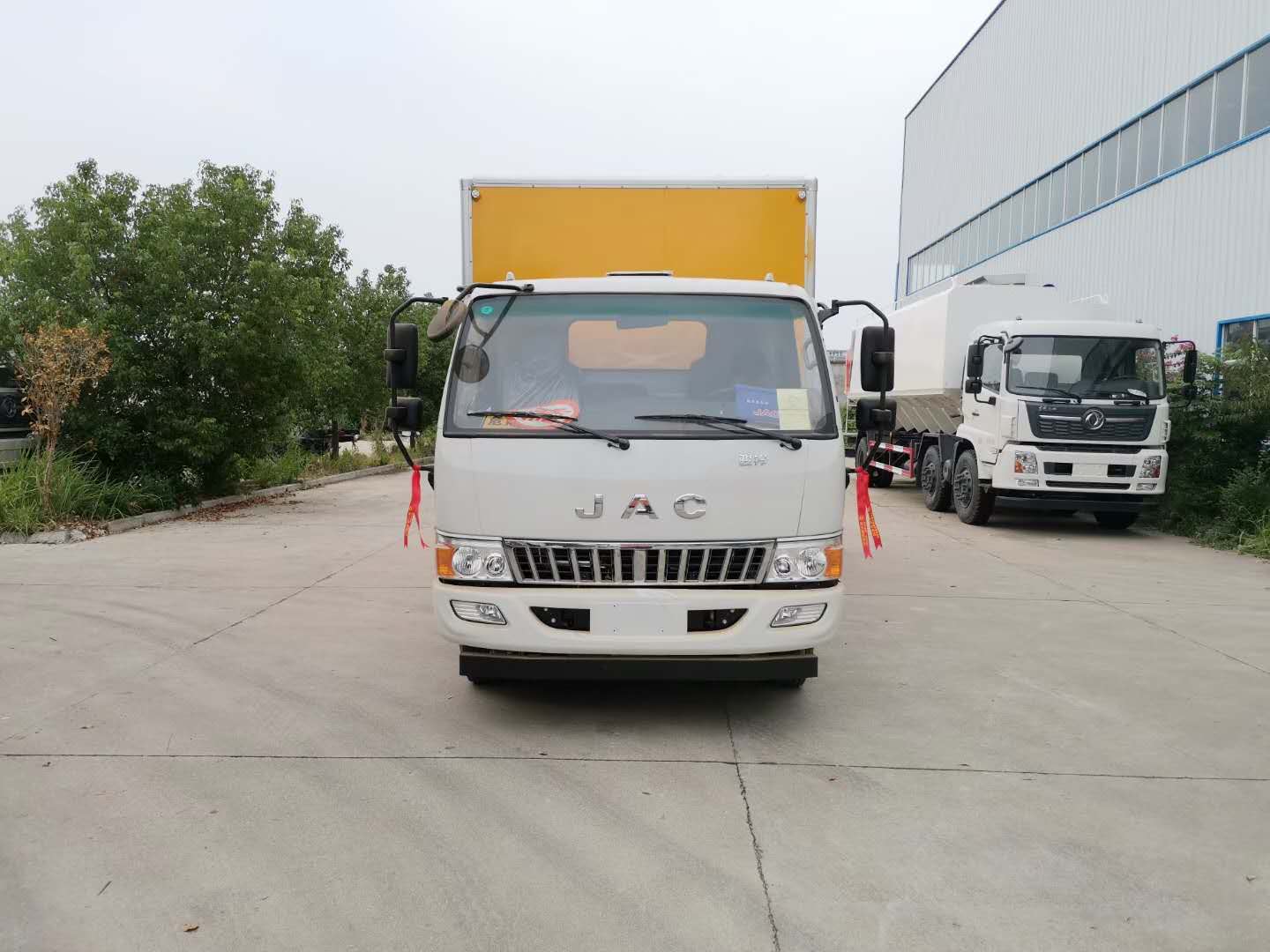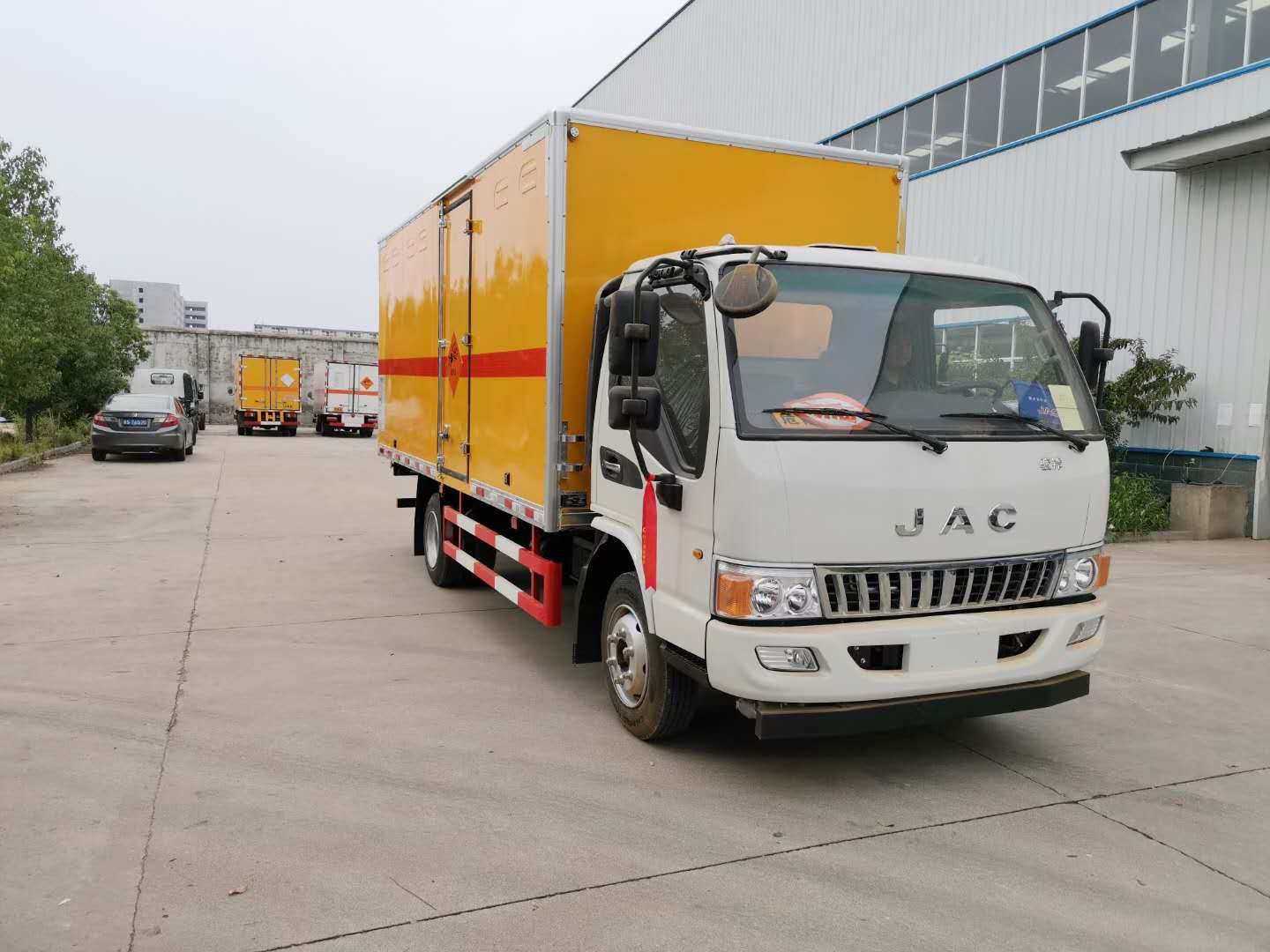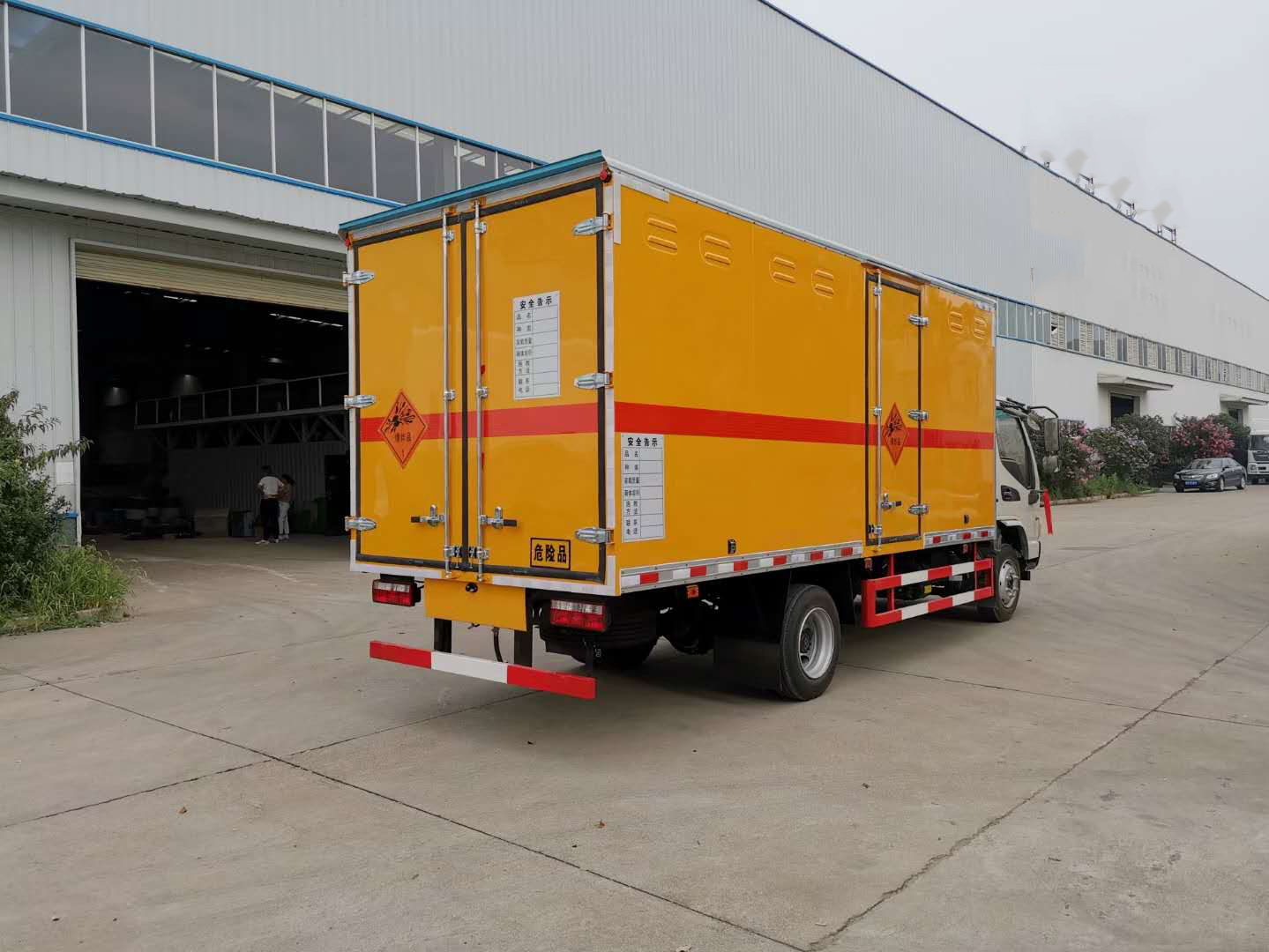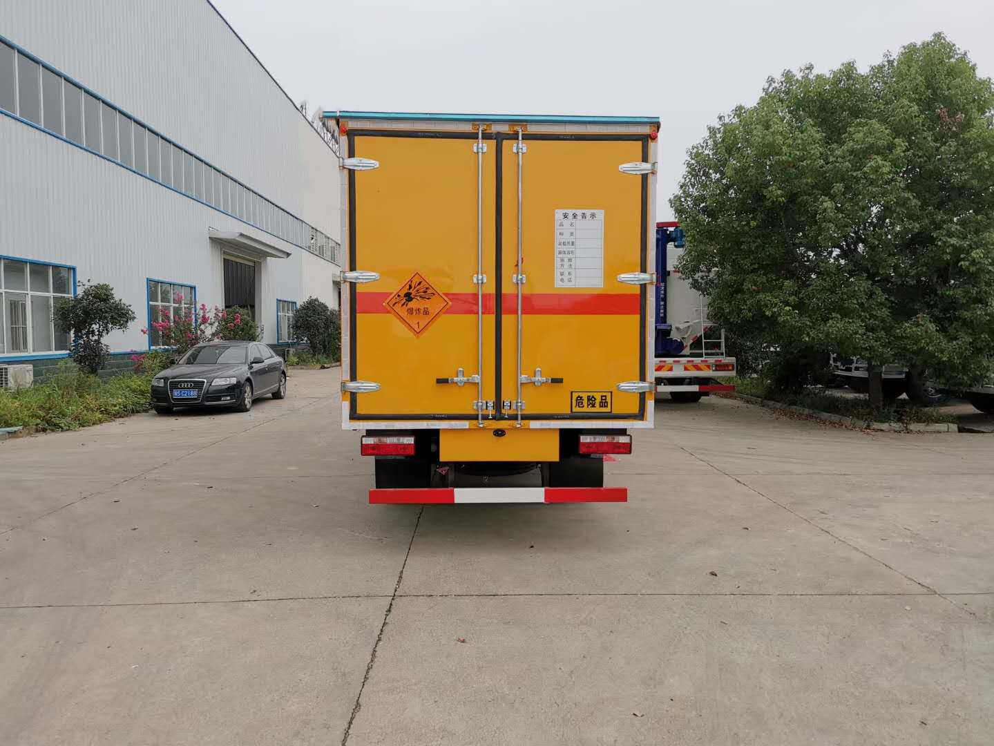 江淮5噸爆破器材運輸車嚴格按照公告尺寸制作,外板采用1mm厚冷軋板有一次性成型的百葉窗,內飾為導電性能良好的鋁板有透氣孔,內襯為矩形管骨架牢靠穩定,內部填充為透氣防潮阻燃的擠塑板,四種材料經現代工藝復合而成,廂體外部上下鋁合金型材包邊,底板和車廂前下部鋪橡膠皮,后門雙開,右側三個雙開門,內部有固定貨物的臥環,車輛外部有靜電帶、滅火器、防火罩,車廂內安裝煙霧報警器和門防盜報警器,嚴格按照國家危險品相關法規張貼。