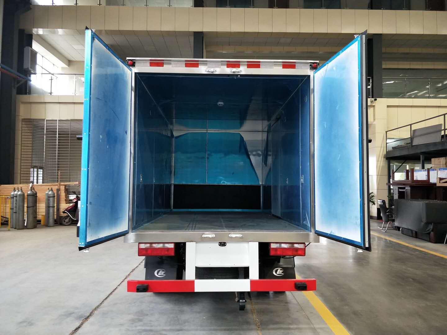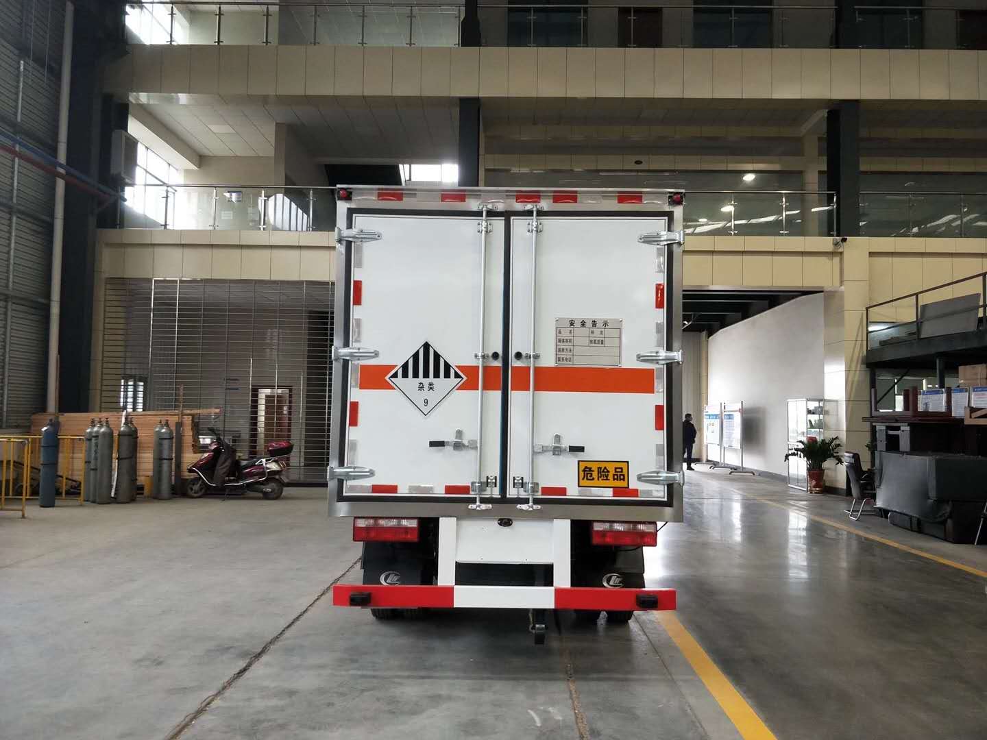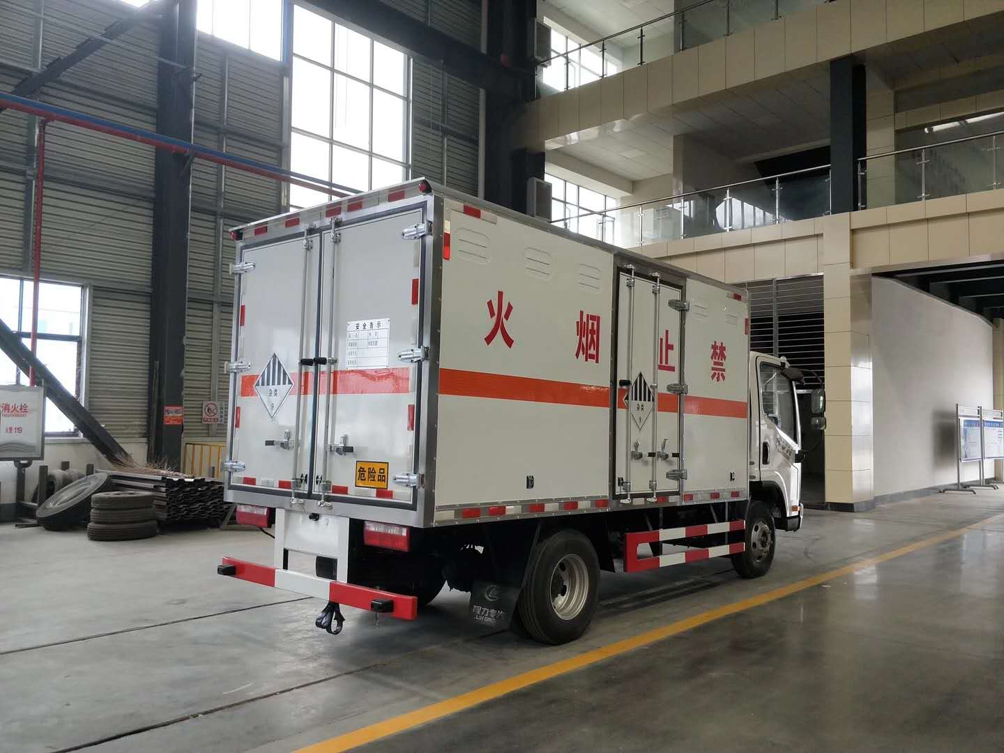 解放虎V危險品車采用解放危險品車底盤,外形尺寸:5995*2130*2800mm,廂體內尺寸:4050*2000*1800mm,濰柴110馬力國五柴油發動機,3300mm軸距,7.00R16輪胎,帶方向助力、帶空調、帶前盤制動,排氣管前置,帶限速器及大燈可調節裝置,廂體采用雙層金屬骨架,外冷軋板、內鋁板,中間夾有國標防阻燃材料,廂體底部鋪防靜電膠片,廂體內配煙霧報警器,車輛內配防盜報警器,帶防火帽、滅火器,粘貼危險品標識、反光貼,隨車帶合格證、上戶發票、隨車工具。