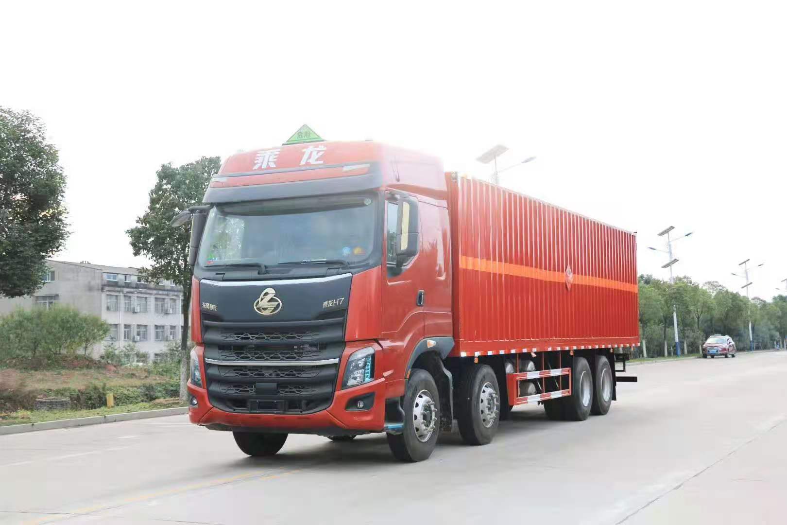 柳汽四軸瓦楞板危險品廂式運輸車采用H73D駕駛室,軸距2050+4400+1350,玉柴400馬力發動機,12R22.5胎,12檔變速箱,400L鋁合金油箱,電動液壓翻轉、ABS、中控鎖、自動調整臂前置排氣管、前輪防爆胎裝置、排氣火花熄滅器、ECU限速裝置(限速80km/h)、駕駛室電源總開關,整車尺寸:11980×2550×3980mm;廂體尺寸9500×2420×2500mm。