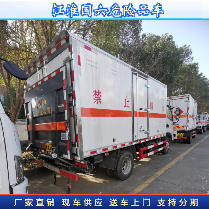江淮國六危險(xiǎn)品廂式運(yùn)輸車整車在制作好后還會(huì)按照車輛運(yùn)輸?shù)念愴?xiàng)來張貼危險(xiǎn)標(biāo)識(shí),及安全告示牌,另外了還標(biāo)配有危險(xiǎn)品三角吸頂燈,危險(xiǎn)品牌,滅火器,防火帽,靜電帶等附件。這款底盤不僅可以制作成運(yùn)輸車、易燃?xì)怏w廂式運(yùn)輸車、易燃液體廂式運(yùn)輸車、毒性和感染性物品廂式運(yùn)輸車等車型,還可以制作成雜項(xiàng)危險(xiǎn)物品廂式運(yùn)輸車,而且它們的廂體尺寸是一樣的。