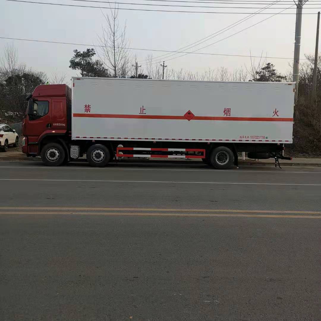 柳汽三軸9米6危險品車廂體嚴格按照公告尺寸制作,外板采用1mm厚冷軋板有一次性成型的百葉窗,內飾為導電性能良好的鋁板有透氣孔,內襯為矩形管骨架牢靠穩定,內部填充為透氣防潮阻燃的擠塑板,四種材料經現代工藝復合而成,廂體外部上下鋁合金型材包邊,底板和車廂前下部鋪橡膠皮,后門雙開,右側中部單開門,內部有固定貨物的臥環,車輛外部有靜電帶、滅火器、防火罩,車廂內安裝煙霧報警器和門防盜報警器,嚴格按照國家危險品相關法規張貼。車身采用雙組份丙烯酸油漆,固含量高,漆膜硬度可達到2H,高硬度高彈性戶外7-8年的保光保色期限,耐候性強耐磨耐腐蝕抗氧化。廂體底盤采用無廢料拼接,密封性更好。可有效防止運載物滲漏。同時無底料拼接可以使貨物受力更均勻,不易變形,經久耐用。廂體底部與廂體前部鋪設有防阻燃導靜電膠板,與底盤等電位連接,可防止靜電火花產生和車輛靜電及時釋放,提高整車的安全性能。底盤大梁與橫梁采用槽鋼連接。擁有相對更好的韌性,重壓之后保持不易變形,具有良好的承載能力。