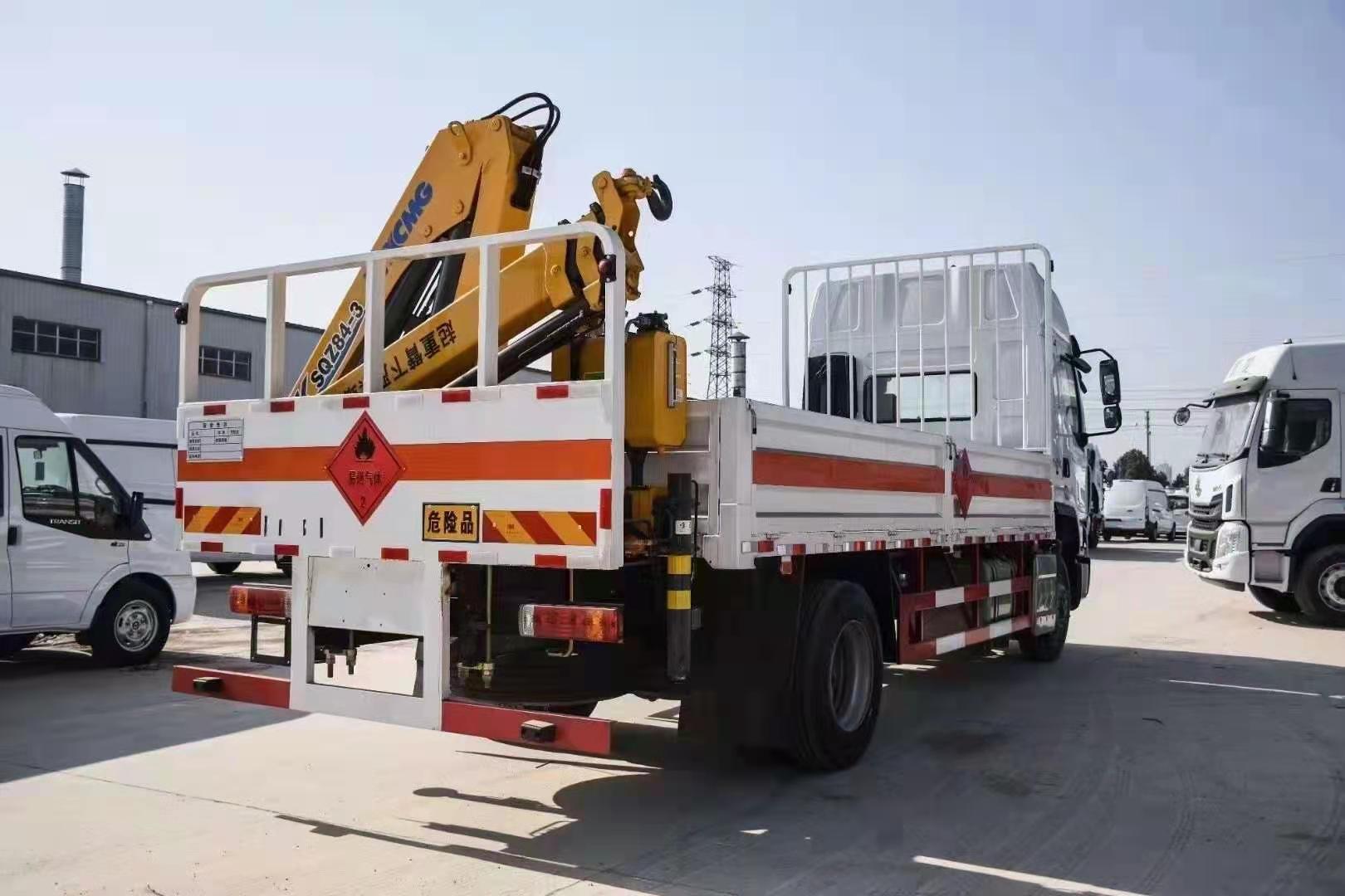 柳汽帶吊國六氣瓶車采用柳汽乘龍危險品車專用底盤,M3駕駛室,陜齒8檔箱變速箱,3.6噸前橋,9噸后橋,264(6)車架,250L鋁合金油箱,10.00R20,半浮式駕駛室懸置、液壓機械翻轉、氣囊減震司機座椅、空調、定速巡航系統、ABS、中控鎖、真皮多功能方向盤。盤式前橋+限速80km/h,貨廂長5.3米,玉柴185馬力發動機,匹配徐工4噸3節臂吊機。無論是小瓶還是大瓶吊裝更方便,客戶再也不用擔心吊裝問題。