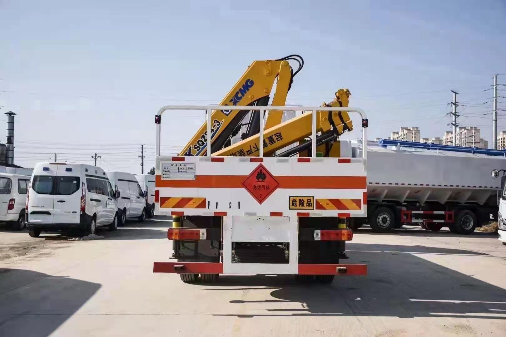 東風柳汽單橋國六帶4噸3節折臂吊氣瓶車采用雙組份丙烯酸油漆,固含量高,漆膜硬度可達到2H,高硬度高彈性戶外7-8年的保光保色期限,耐候性強耐磨耐腐蝕抗氧化。廂體底盤采用無廢料拼接,密封性更好。可有效防止運載物滲漏。同時無底料拼接可以使貨物受力更均勻,不易變形,經久耐用。廂體底部與廂體前部鋪設有防阻燃導靜電膠板,與底盤等電位連接,可防止靜電火花產生和車輛靜電及時釋放,提高整車的安全性能。底盤大梁與橫梁采用槽鋼連接。擁有相對更好的韌性,重壓之后保持不易變形,具有良好的承載能力。