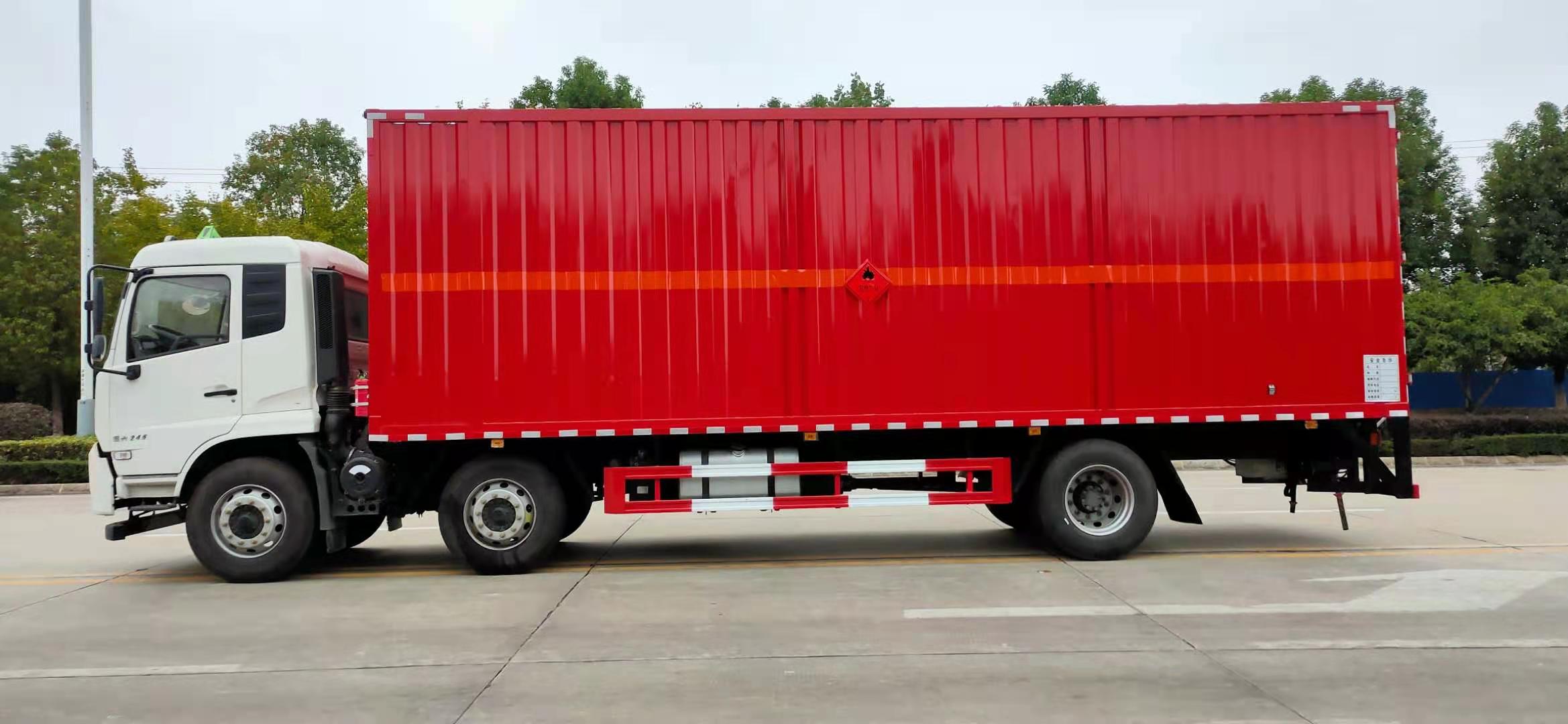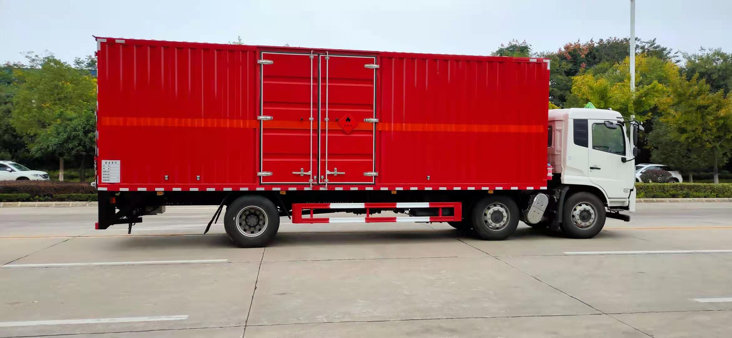 東風(fēng)天錦三軸9米易燃液體廂式運(yùn)輸車嚴(yán)格按照公告尺寸制作,外板采用 1mm 厚冷軋板有一次性成型的百葉窗,內(nèi)飾為導(dǎo)電性能良好的鋁板有透氣孔,內(nèi)襯為矩形管骨架牢靠穩(wěn)定,內(nèi)部填充為透氣防潮阻燃的擠塑板,四種材料經(jīng)現(xiàn)代工藝復(fù)合而成,廂體外部上下鋁合金型材包邊,底板和車廂前下部鋪橡膠皮,后門雙開,右側(cè)中部?jī)蓚(gè)雙開門,內(nèi)部有固定貨物的臥環(huán),車輛外部有靜電帶、滅火器、防火罩,車廂內(nèi)安裝煙霧報(bào)警器和門防盜報(bào)警器,嚴(yán)格按照國(guó)家危險(xiǎn)品相關(guān)法規(guī)張貼。