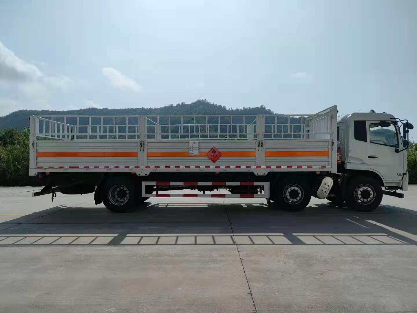 東風天錦三軸8米6國六氣瓶運輸車底盤配置:采用東風天錦小三軸原廠危險品車底盤,采用康明斯B6.2NS6B245發動機,大同DC7J100TA變速箱,軸距:1995+5000mm,295/80R22.518PR真空輪胎;前橋6噸,后橋10噸,單減,空氣懸架底盤,帶280L鋁油箱,排氣管前置,帶前盤制動、應急防爆胎裝置、剎車襯片預警提示。東風天錦三軸8米6國六氣瓶運輸車嚴格按照公告尺寸制作,邊2底4材質,底板上鋪靜電膠皮,側板平板內置臥環,側板上帶可卸式高欄,配備滅火器,三角頂燈,靜電拖帶等,嚴格按照國家危險品法規進行“易燃氣體”標識粘貼等。