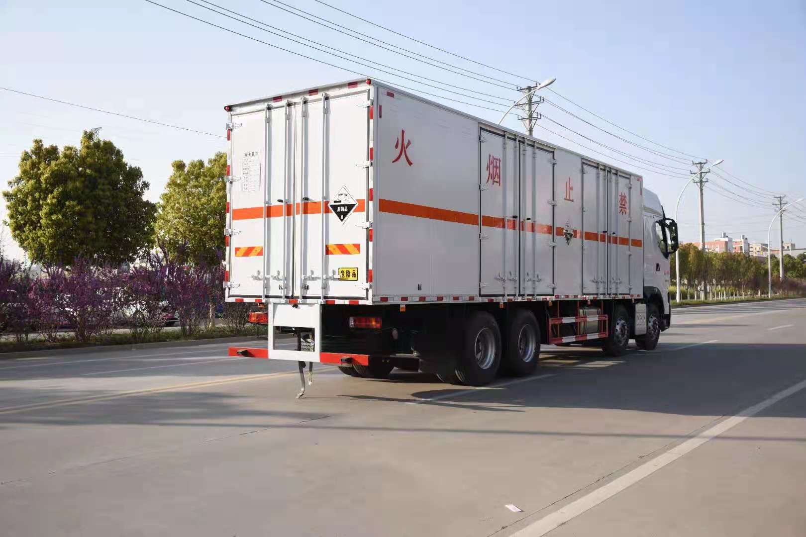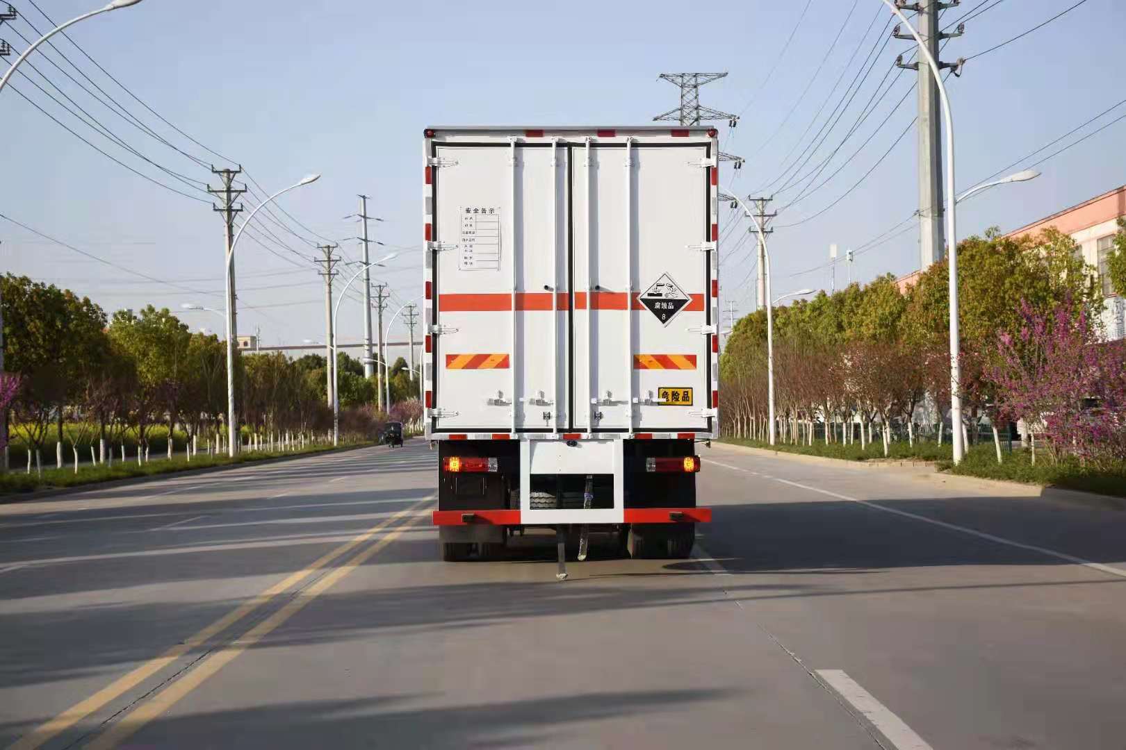 東風(fēng)柳汽前四后八國六危險品廂式車嚴(yán)格按照公告尺寸制作,外板采用1mm厚冷軋板有一次性成型的百葉窗,內(nèi)飾為導(dǎo)電性能良好的鋁板有透氣孔,內(nèi)襯為矩形管骨架牢靠穩(wěn)定,內(nèi)部填充為透氣防潮阻燃的擠塑板,四種材料經(jīng)現(xiàn)代工藝復(fù)合而成,廂體外部上下鋁合金型材包邊,底板和車廂前下部鋪橡膠皮,后門雙開,右側(cè)中部兩個雙開門,內(nèi)部有固定貨物的臥環(huán),車輛外部有靜電帶、滅火器、防火罩,車廂內(nèi)安裝煙霧報警器和門防盜報警器,嚴(yán)格按照國家危險品相關(guān)法規(guī)張貼。