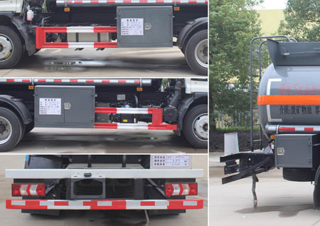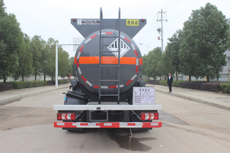 江淮駿鈴V7國六雜項危險品罐式運輸車罐體外壁通倉采用Q235材質,內壁點焊鋼絲網,內襯聚乙烯;罐體厚度封頭5.5mm,筒體4.5mm,防浪板3.5mm,襯塑16mm;副梁采用高強度鋼;海底閥為4寸智能提醒式鋼襯四氟海底閥,掛體尾部兩側各DN80全塑出料口一個,罐頂采用瀝青防腐;帶后保險桿,活動護欄,一個工具箱,兩個碳鋼或全塑出料口保護箱,側護欄采用鋁合金材質。