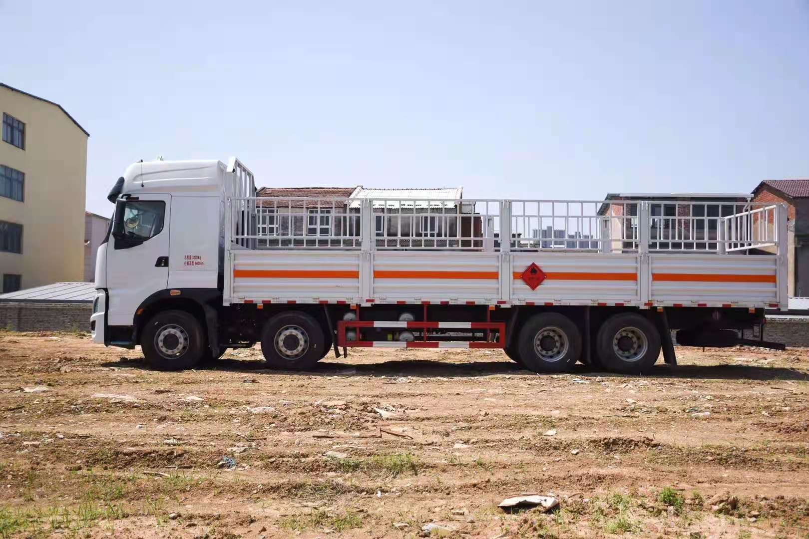 柳汽乘龍前四后八高頂雙臥氣瓶車(chē)采用廂式欄板車(chē)結(jié)構(gòu),外厚度為1.1毫米厚度武鋼冷軋鋼板(或沖壓成瓦楞板,以公告為準(zhǔn)),內(nèi)加強(qiáng)“幾”字型加強(qiáng)梁,車(chē)體底板加強(qiáng)處理并做防靜電處理。車(chē)體的左側(cè)、右側(cè),和后欄板栓鉤結(jié)構(gòu),可向下打開(kāi),方便上下貨物,車(chē)體為空曠式車(chē)型,大大減少了運(yùn)輸物品因?yàn)楠M窄空和強(qiáng)烈碰撞產(chǎn)生氣瓶爆炸的危險(xiǎn)性,箱體外觀涂裝白色油漆,在欄板的中間位置粘貼橙色的危化車(chē)標(biāo)帶,并在車(chē)體的左、右、后部粘貼“易燃?xì)怏w”或“不燃?xì)怏w”標(biāo)識(shí)。駕駛室內(nèi)部配備兩只滅火器,后杠處安裝防追尾事故的緩沖固定塊。此款車(chē)輛屬于國(guó)家規(guī)定的危險(xiǎn)品二類(lèi)危險(xiǎn)品運(yùn)輸車(chē)。