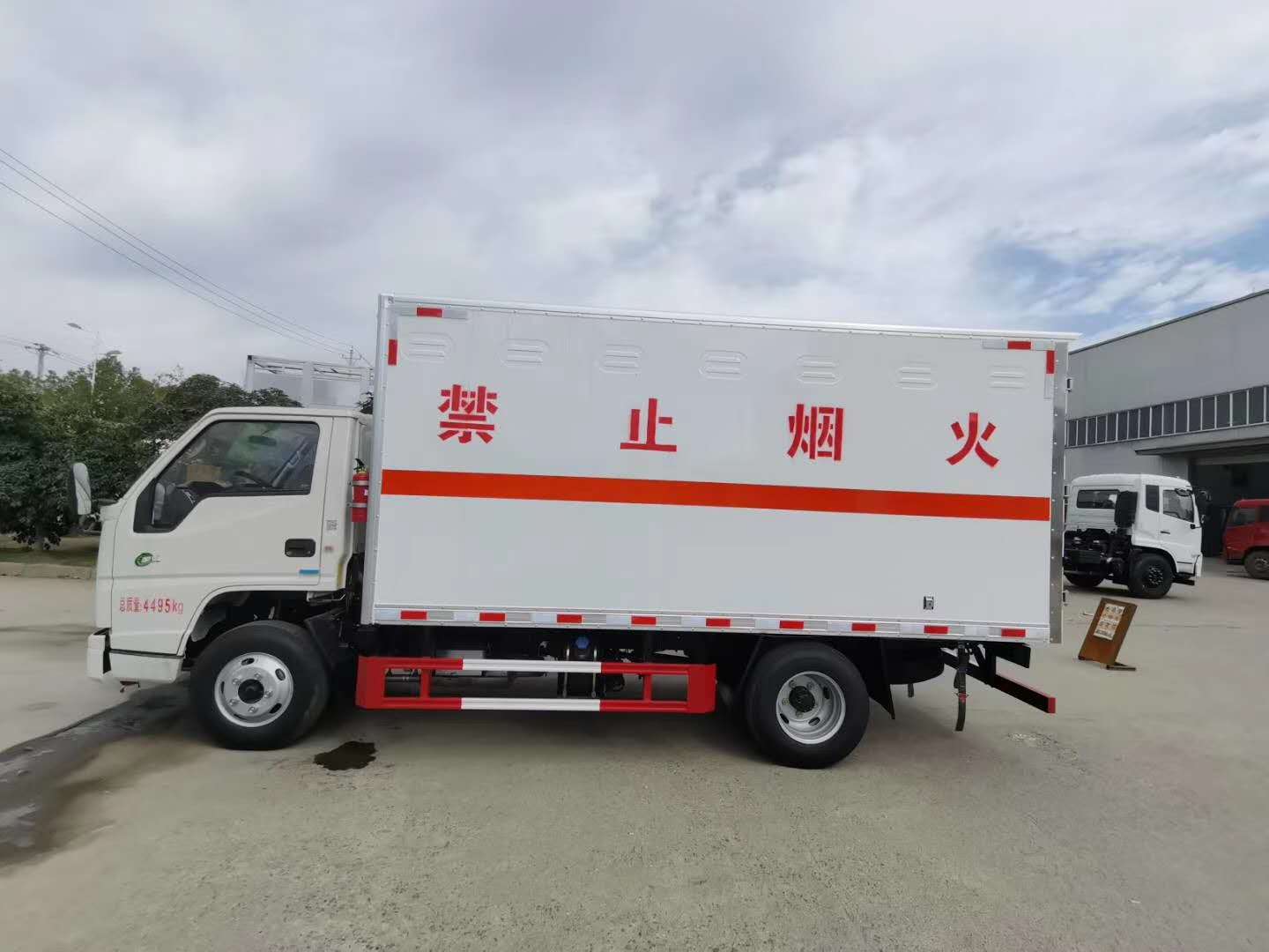 江鈴順達藍牌易燃氣體廂式運輸車外形尺寸:(長:5995;寬:2120,2270;高:2300;),箱體尺寸:(長:4200,4150;寬:1950,2100;高:600,550;),總質量(Kg):4495;額定載質量(Kg):1445;整備質量(Kg):2920;箱體標配3個厚的花紋板,副梁標配120的槽鋼,龍門架為100的槽鋼,墻板厚度為1.2個厚的冷軋板,廂體內部選裝固定貨物的卡槽,橫梁間距為320CM,底板配有靜電膠皮,選裝液壓尾板,底板加厚,橫梁加密,上部高欄中部打斷或底板立柱打斷。廂體可選裝瓦楞板結構墻板,平面板結構墻板,(可拆卸),選裝上部花欄上下翻轉或左右開啟.整車按照公告要求張貼反光標識,危險品標牌,安全告示等,靜電尾帶兩根,防火帽,隨車滅火器(一對),按照公告要求張貼“易燃氣體”“不燃氣體”標識。
