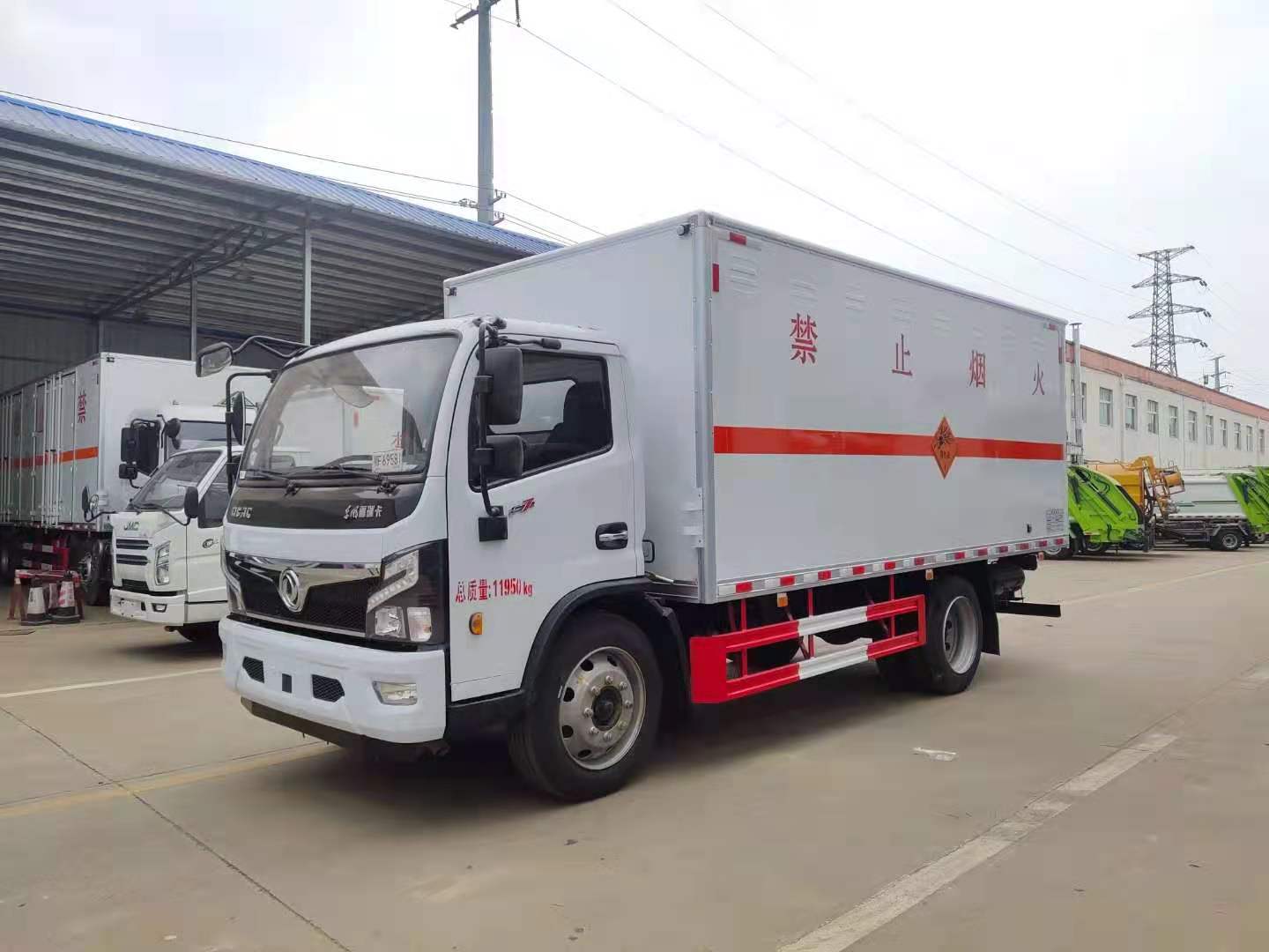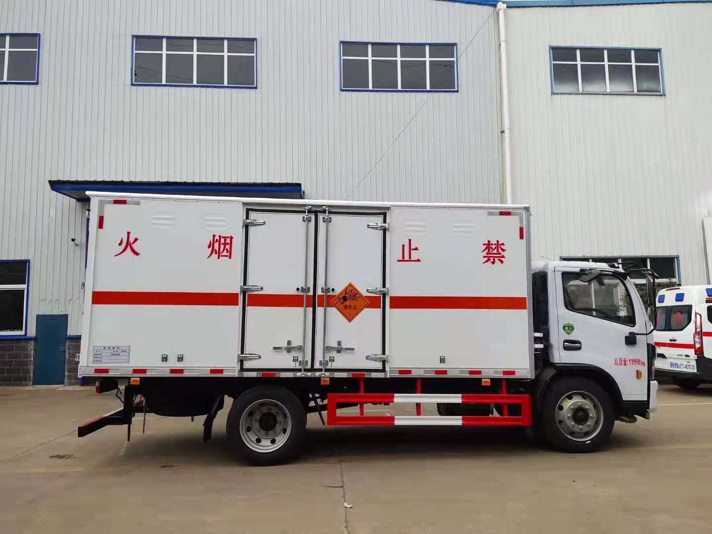 東風福瑞卡8噸危險品車因承載力強,適合運輸重載版貨物。廂體外板采用1.2mm厚冷軋鋼板壓瓦成型,內(nèi)部槽鋼骨架,底板采用3mm花紋板上鋪設防靜電膠皮。廂體右側(cè)開對開門,后部設置對開門,廂體內(nèi)部兩側(cè)安裝捆綁貨物的臥環(huán)。廂體內(nèi)部安裝煙霧報警器及防盜報警感應器。