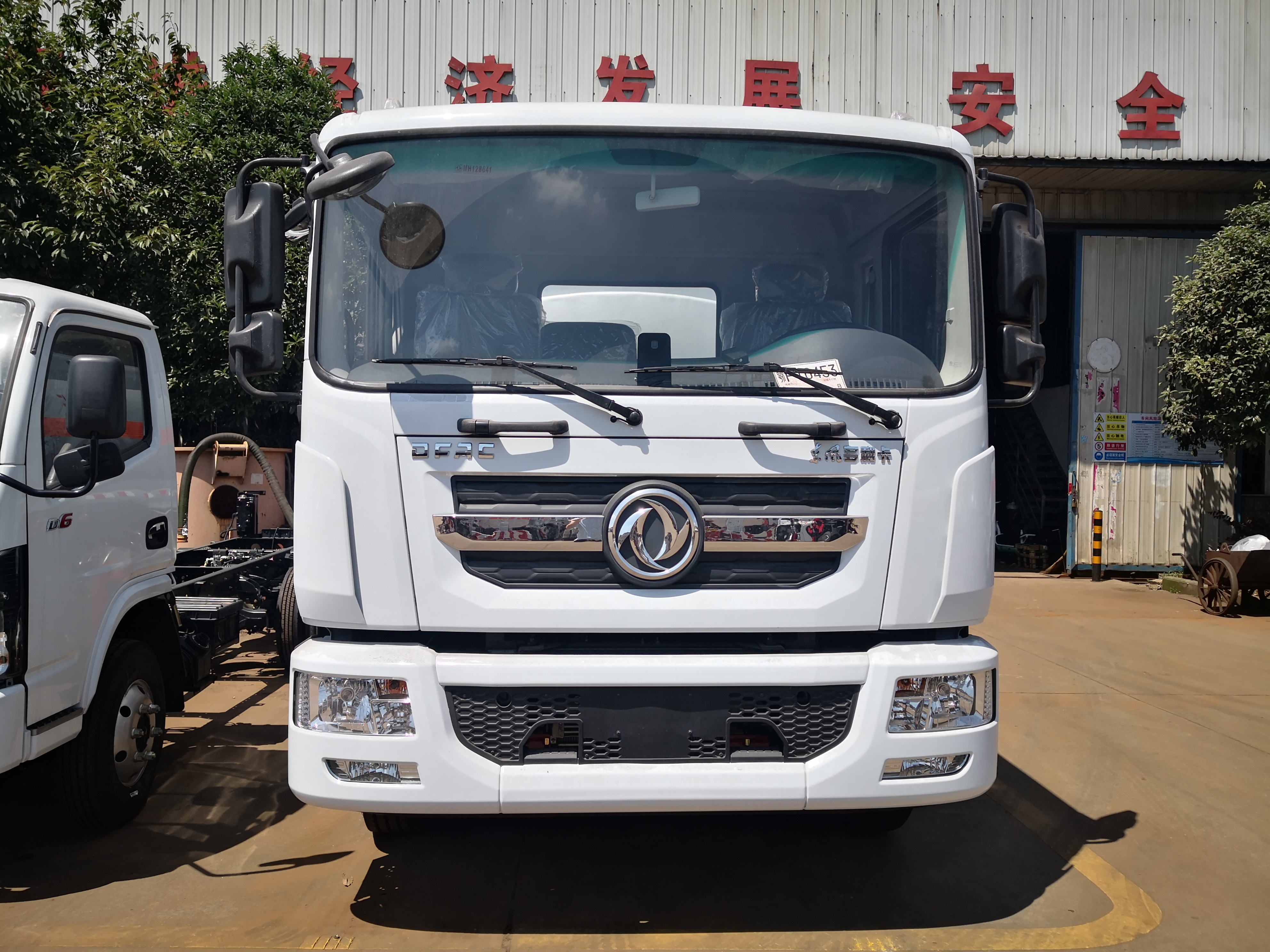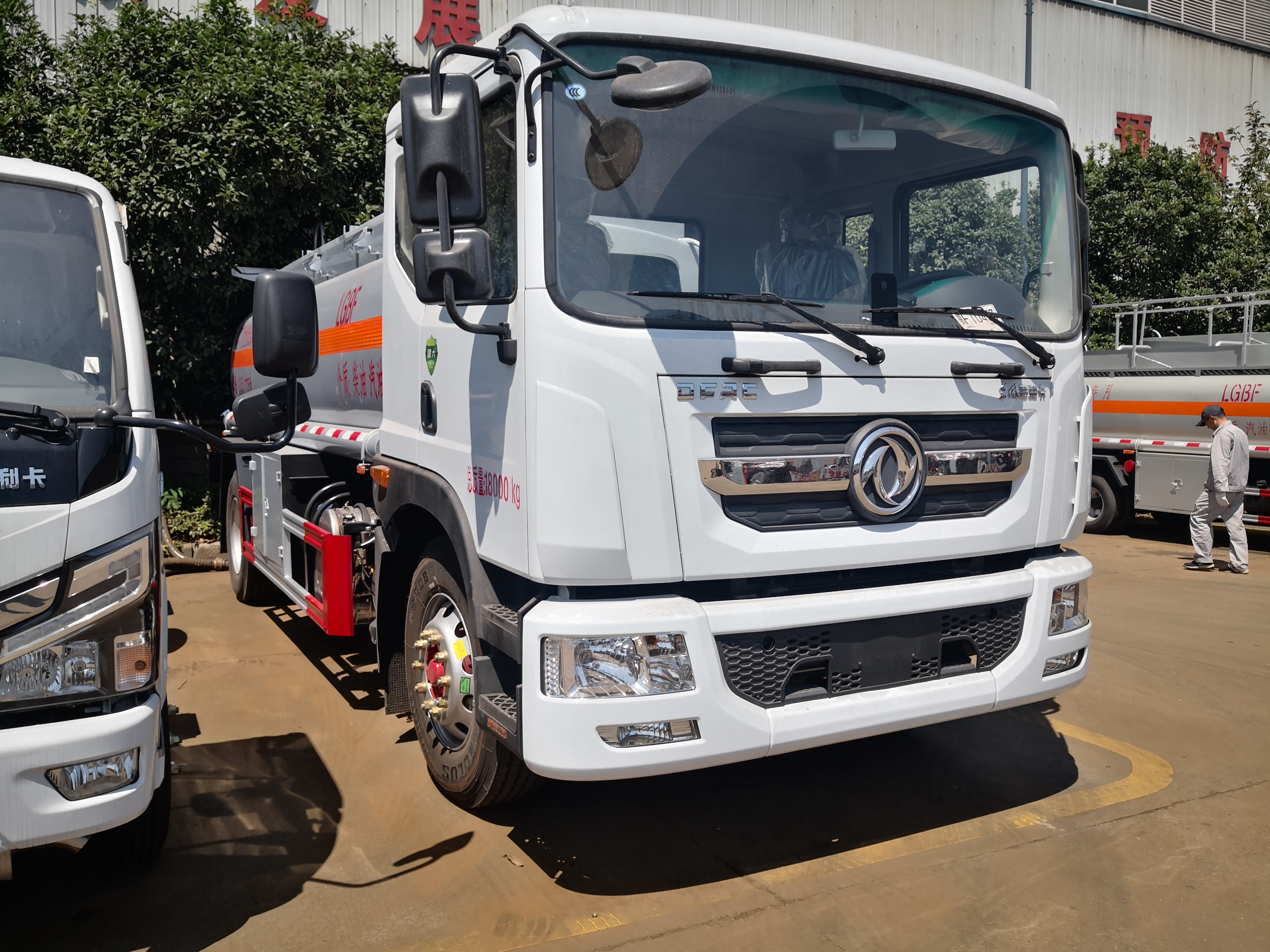 東風D9國六運油車采用東風D9國六危險品車專用底盤,軸距4700mm,發動機六缸B6.2NS6B230,230馬力,法士特小八檔變速箱帶取力器,295/80R22.5,前后橋4.5/10德納,250雙層車架,動轉,離合助力,電動門窗中空鎖,空調,斷氣剎,排氣制動,ABS,氣囊座椅/空氣懸架/取力器/防爆胎/前碰撞預警/車道偏離提醒/胎壓監測