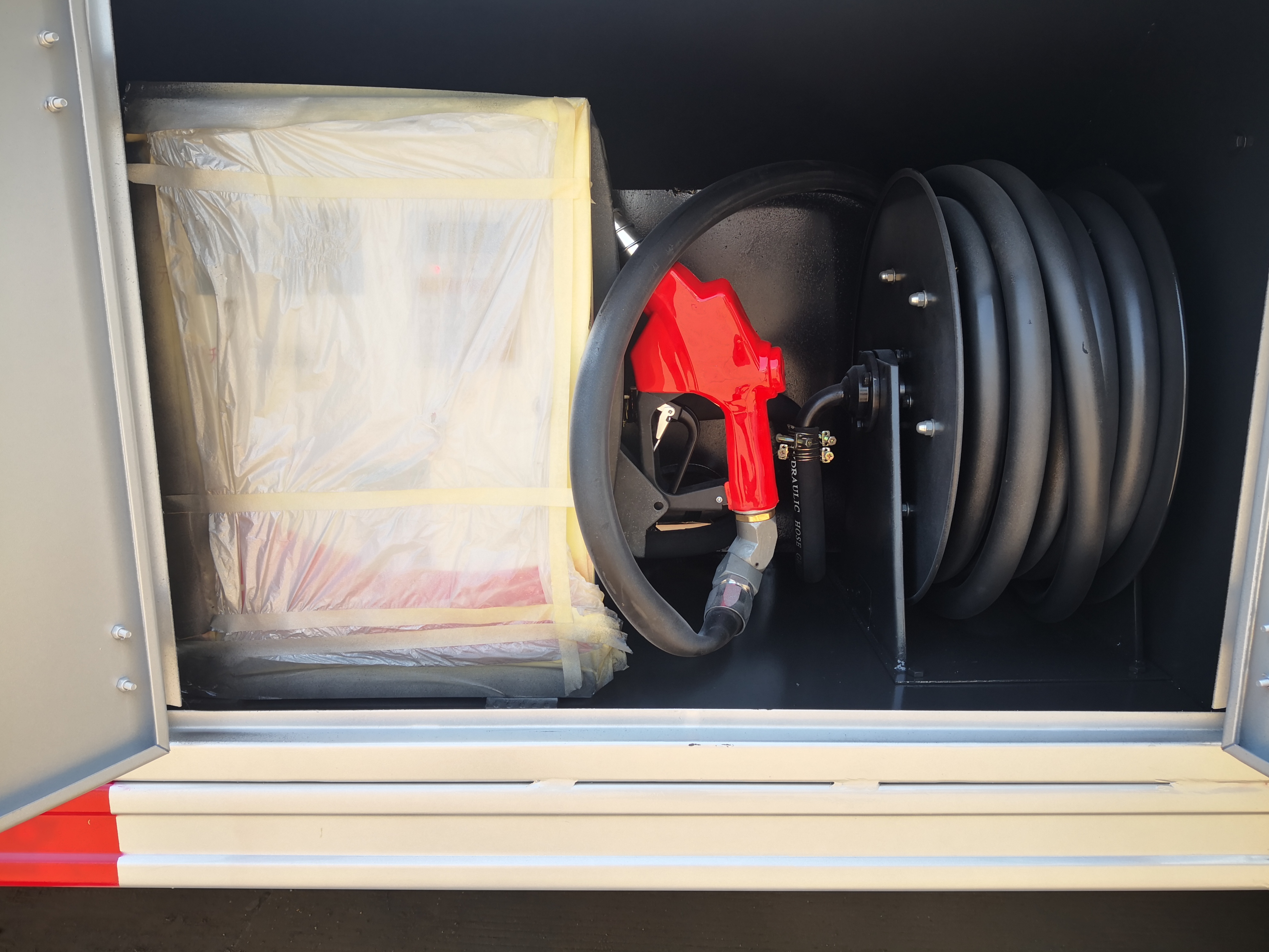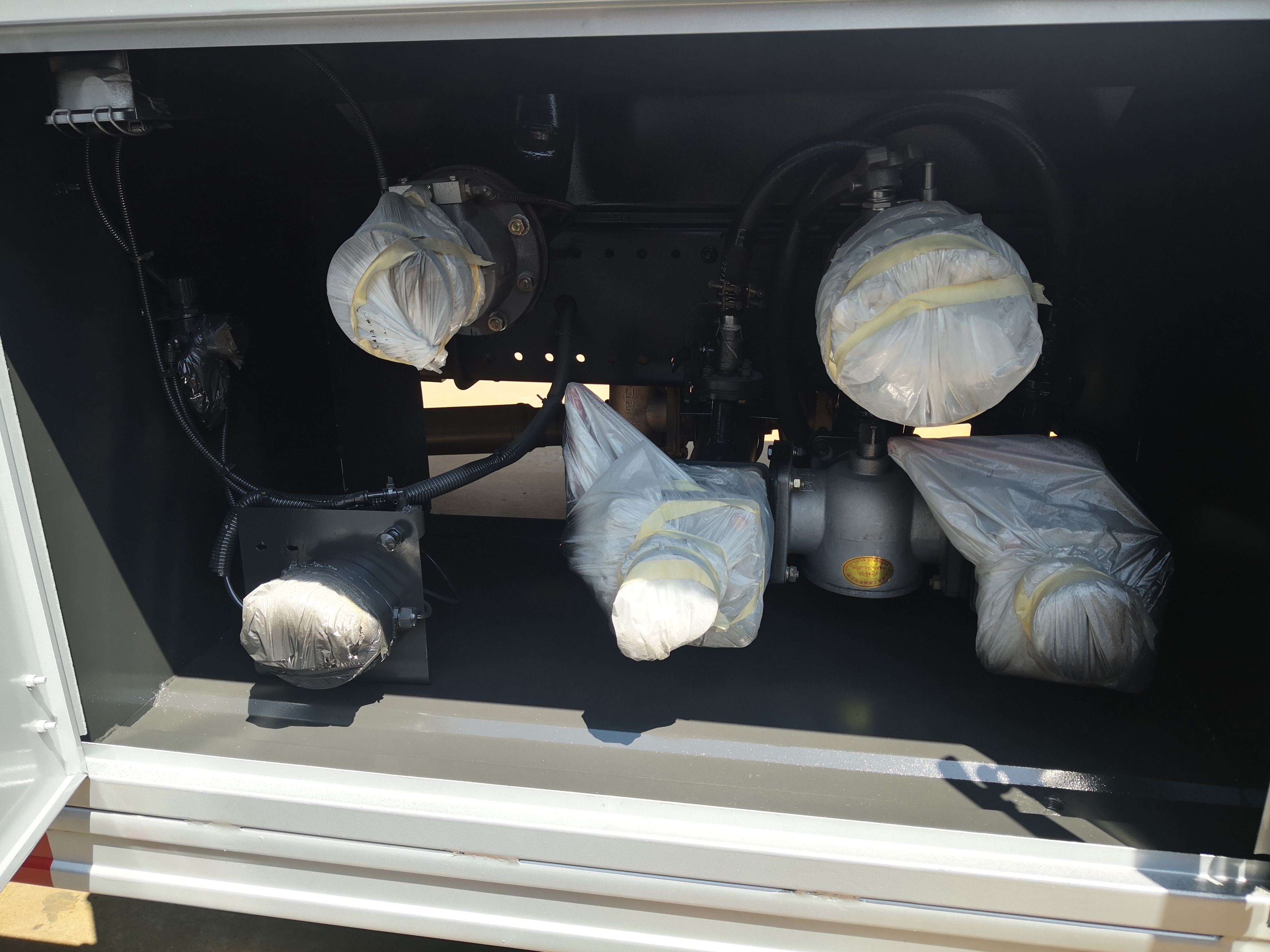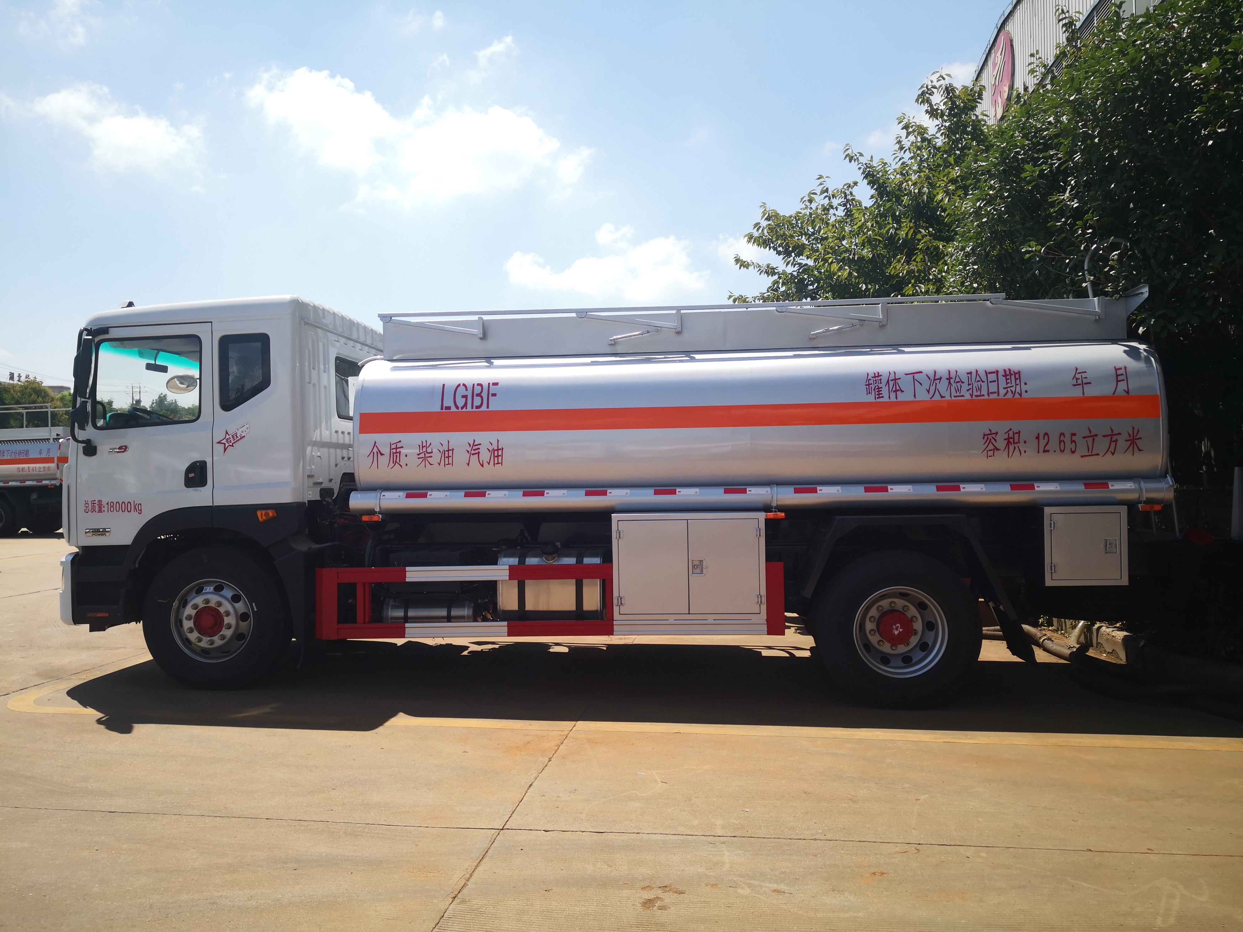 /EBS/ESC/AEBS/單錠行駛記錄儀罐體容積12.65m3,罐體采用Q235B優質碳鋼板制作。3、一個鋁合金歐式罐口,一個鋁合金海底閥(帶海底閥新規), 80-60泵(右側3寸出口),一套油氣回收裝置,一套防溢漏報警裝置,一個下裝口(裝右側),15米自動回位卷盤,長穩大流量加油機,一個靜電線盤,罐頂升降護欄,一個工具箱,一個防火帽,帶堵蓋。4、油漆:金屬銀灰漆,貼反光線條及3號危險品標。