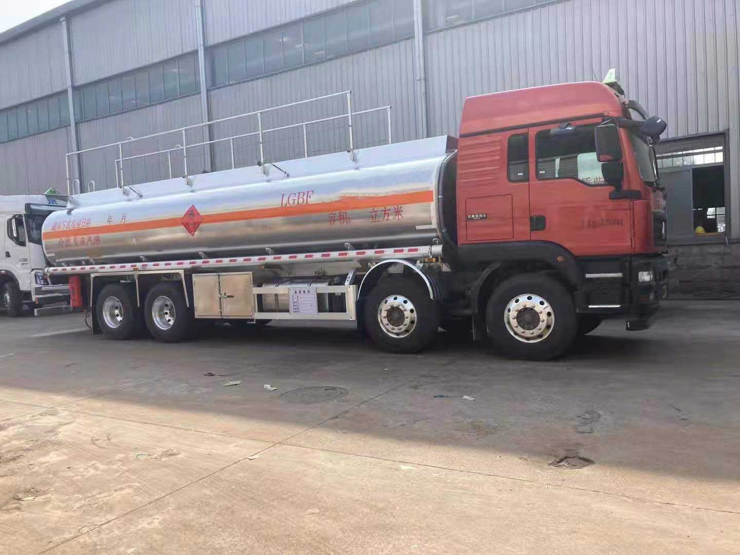 汕德卡國六26方鋁合金運油車優勢:1.同樣的車型用鋁合金罐體可以拉的更多。鋁合金油罐車罐體屬鋁鎂合金,材料密度比較小,因而同等容積的罐體相對碳鋼來說質量更輕一些。