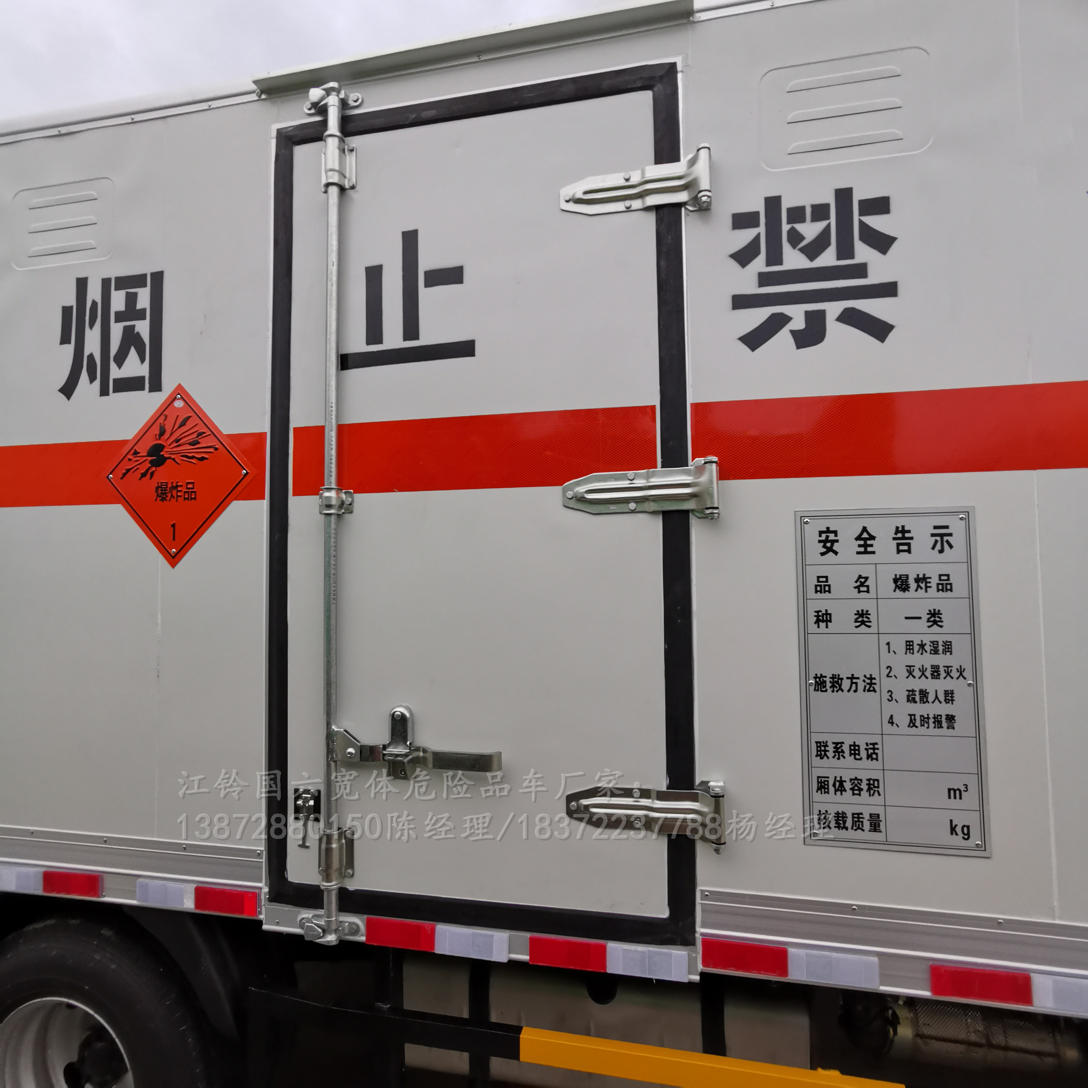 廂體側(cè)壁有防雨功能自然通風(fēng)窗口,廂體內(nèi)部配有固定拉環(huán),底板鋪設(shè)導(dǎo)靜電膠板。門磁報警器、煙霧報警器、導(dǎo)靜電拖地帶等安全配置齊全。歐航爆材運輸車制作精良,廂體免噴漆,耐老化,使用壽命長,節(jié)能環(huán)保,美觀大方,可靠耐用,具有防火、防爆、防雨、防盜等相關(guān)功能,完全滿足國家相關(guān)法律法規(guī)要求,引領(lǐng)市場和行業(yè)發(fā)展。滿足多種運品需求1黑火薬、壓縮黑吙藥、爆破炸薬、無煙火薬、糊狀火藥、商品爆炸裝薬(無雷罐),專用煙吙制品、聚能裝薬(無雷罐)、煙花爆燭,電引爆雷罐、非電引爆雷罐、懾彈、導(dǎo)爆索(軟),油井用彈藥筒、推進(jìn)劑、動力裝置彈藥筒、吙工品。